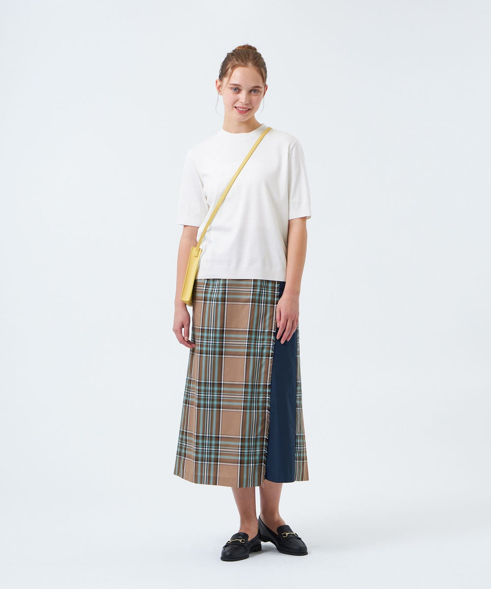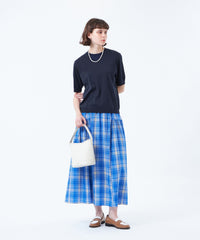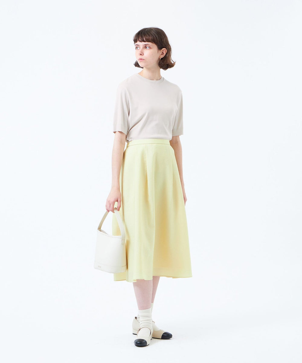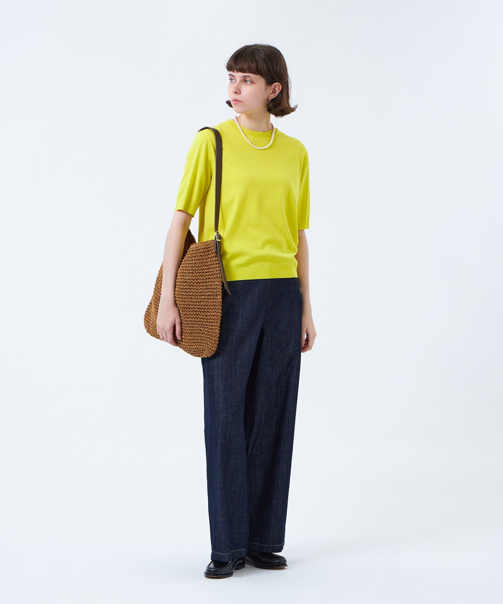 シンプルなデザインでボトムスを選ばず、一枚でコーディネートの幅が広がるニットソー。カジュアルなアイテムとコーディネートしても上品で大人な雰囲気にまとまります。