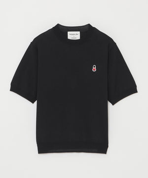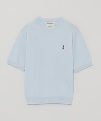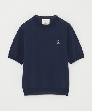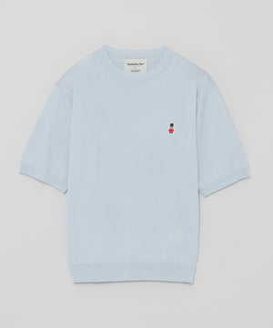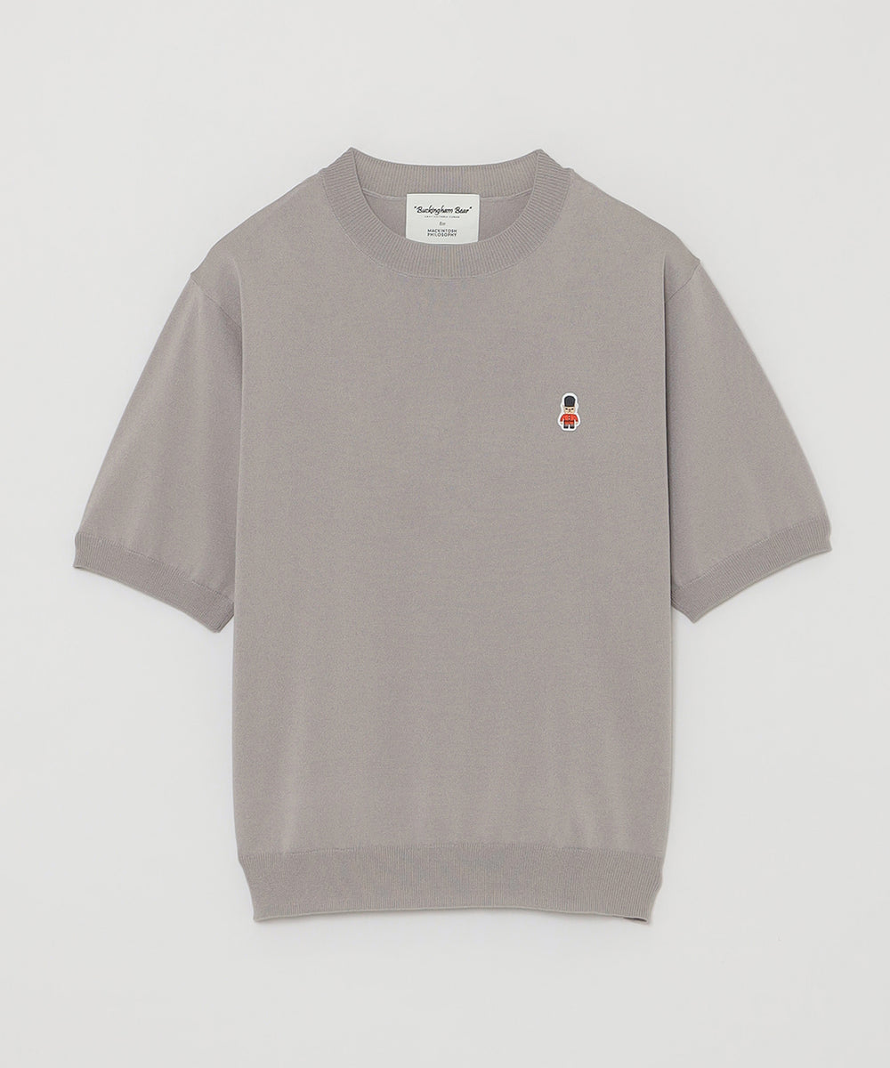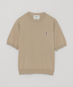 シンプルな半袖ニットにオリジナルキャラクターのBUCKINGHAM BEARワッペンがワンポイントに。