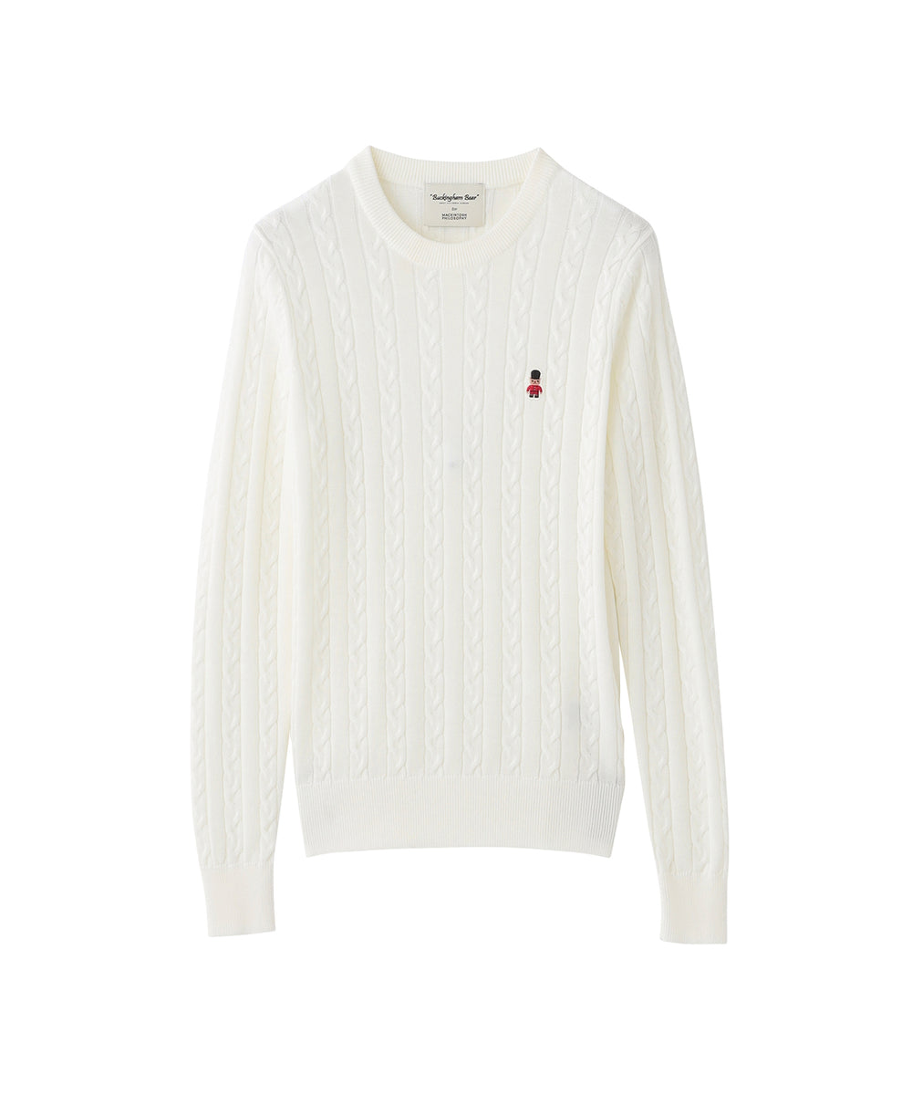<バッキンガムベアのワンポイントケーブルニット>