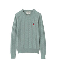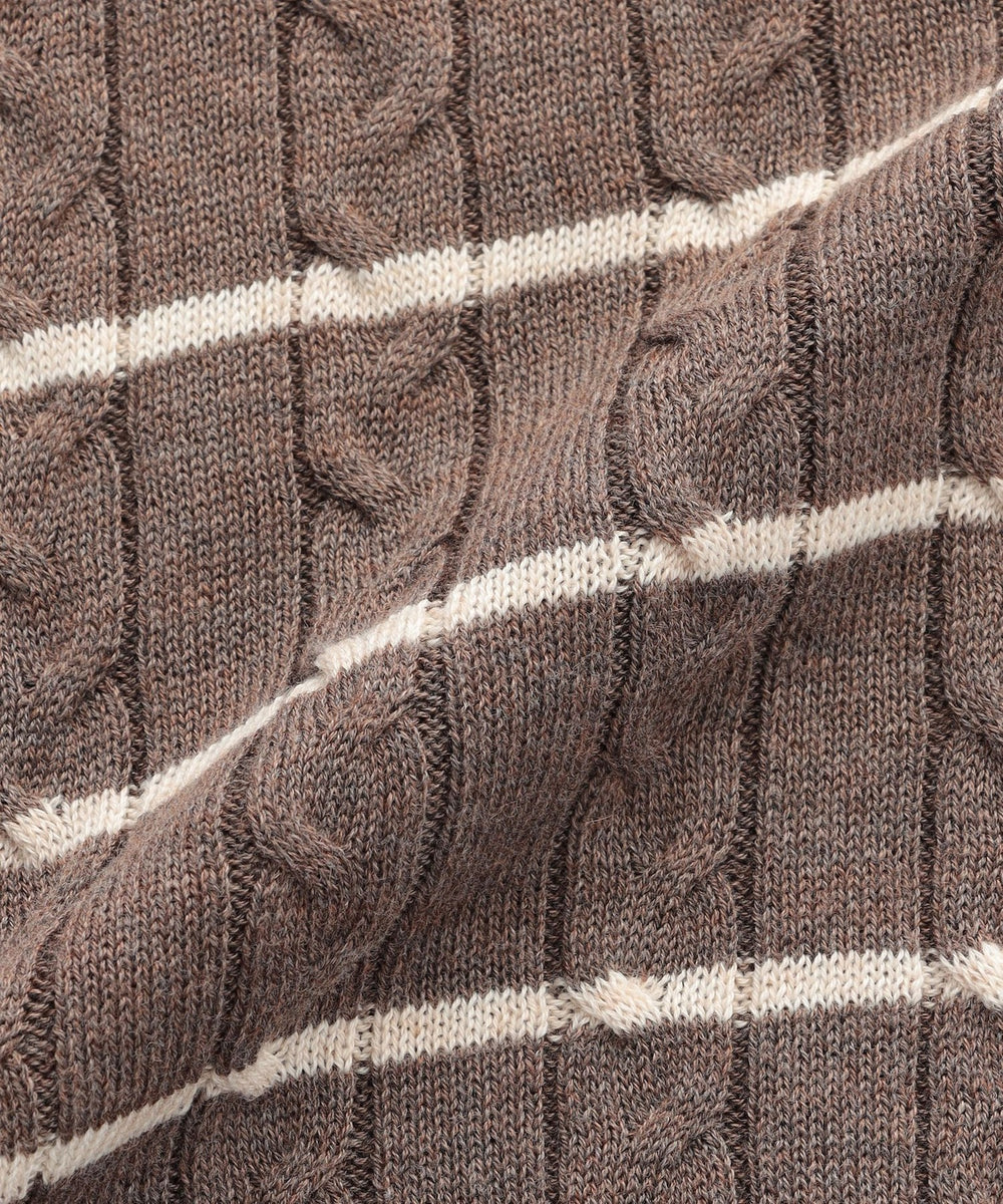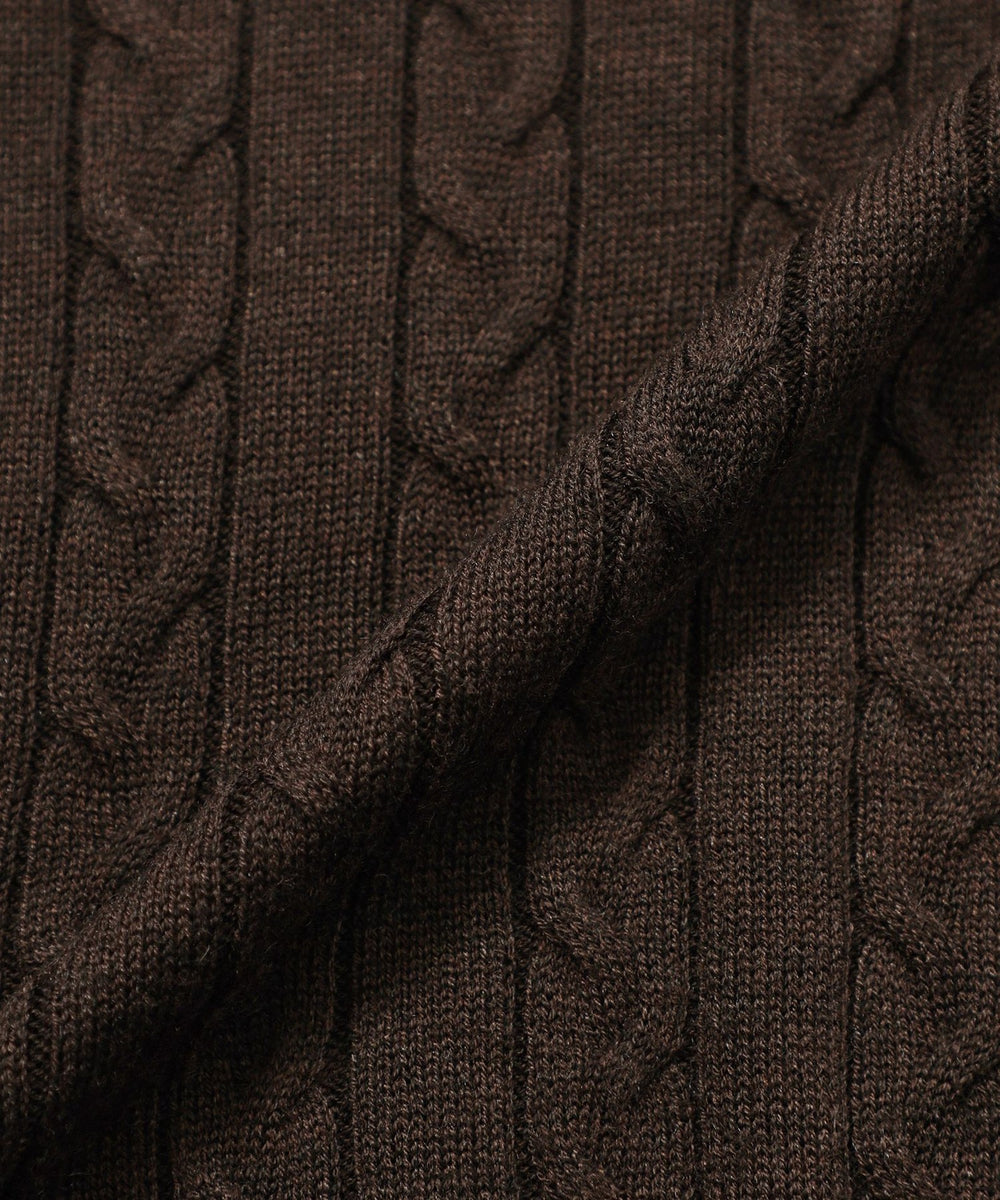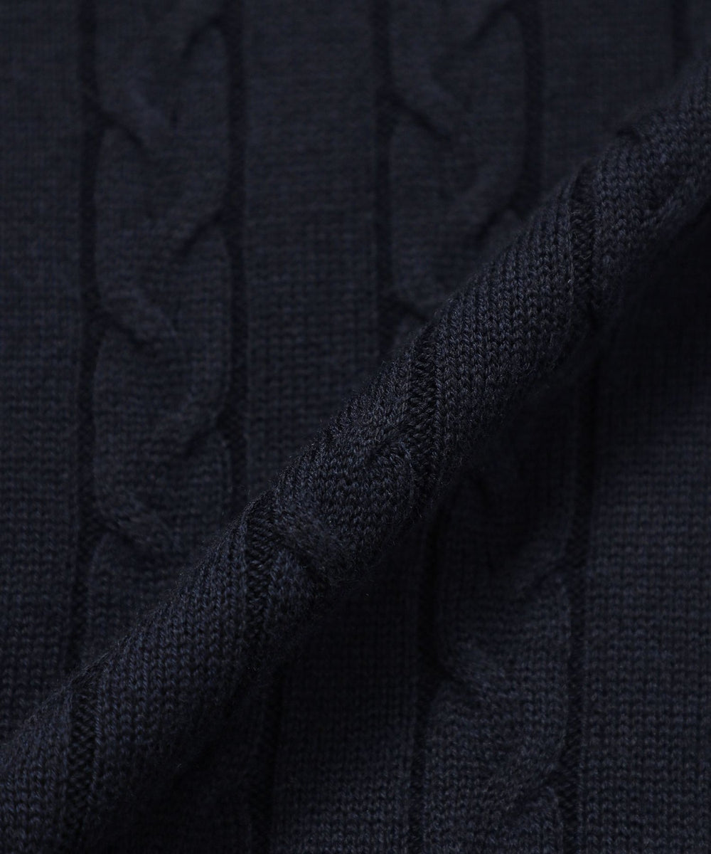 胸元のワッペンがアクセントのクラシックなケーブルニットプルオーバー。