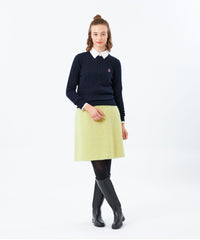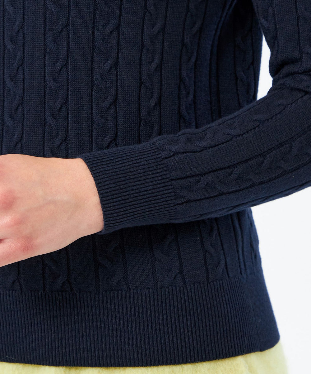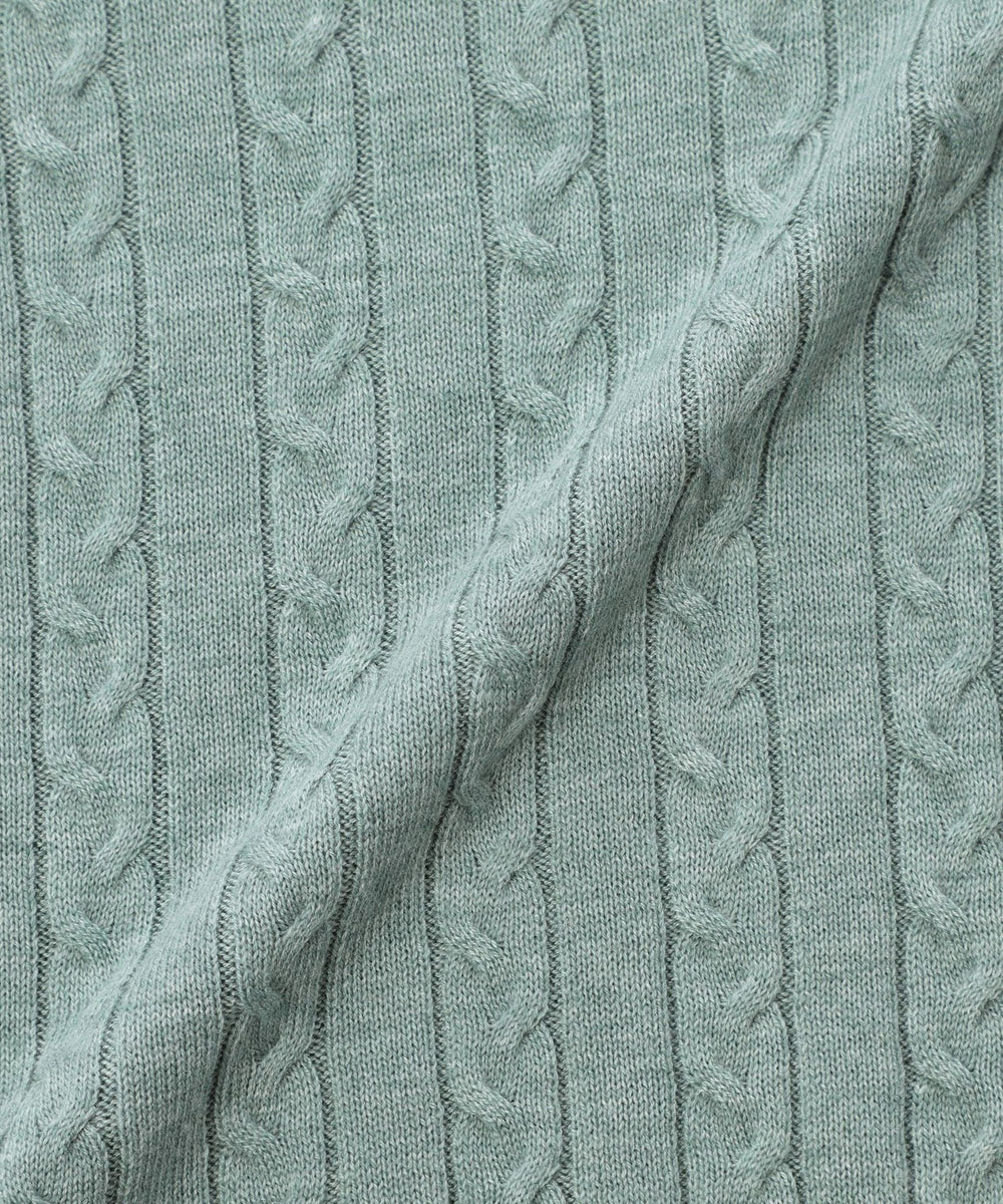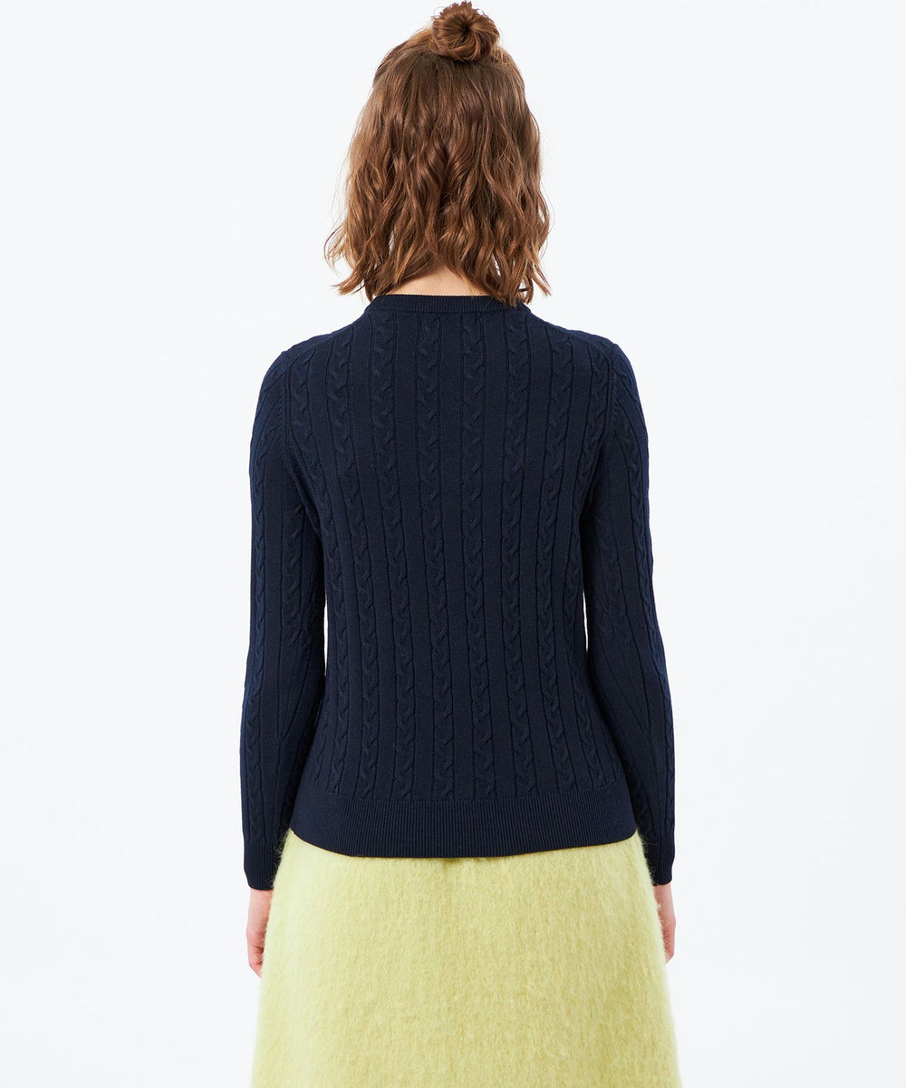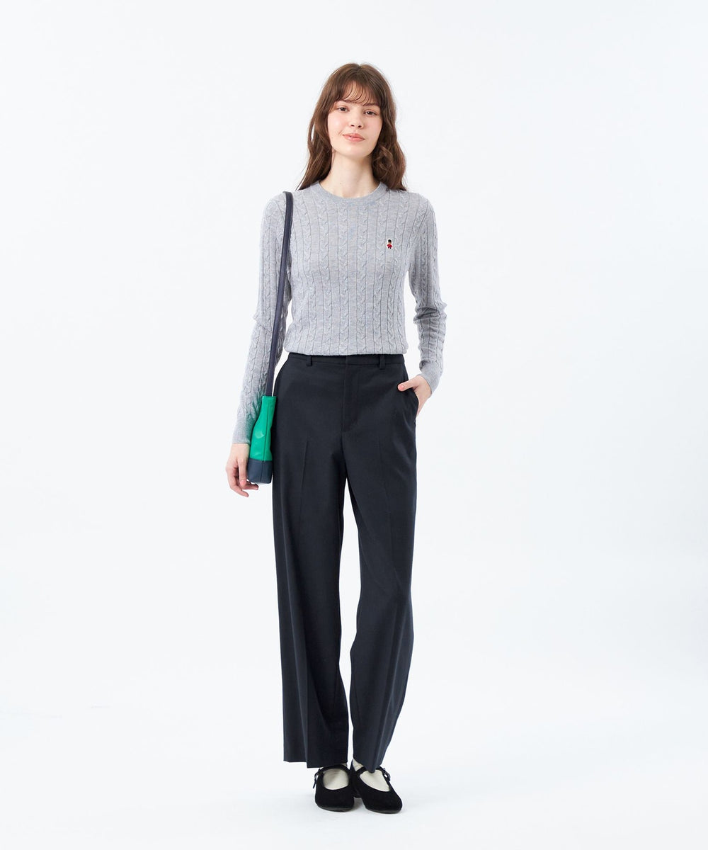 胸元のワッペンがアクセントのクラシックなケーブルニットプルオーバー。