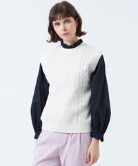 ケーブル柄をラインで表現したニットベスト。