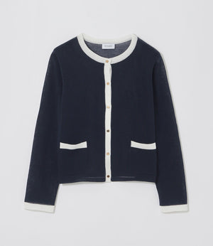 キルティングシリーズの代表モデル、ROYTON(ロイトン)をニットで表現したカーディガン。程よくきちんと感がありながら、シアーな素材でトレンド感を演出。コンパクトな着丈でハイウエスのボトムスやワンピースと合わせるとバランス良く決まるのでおすすめです。