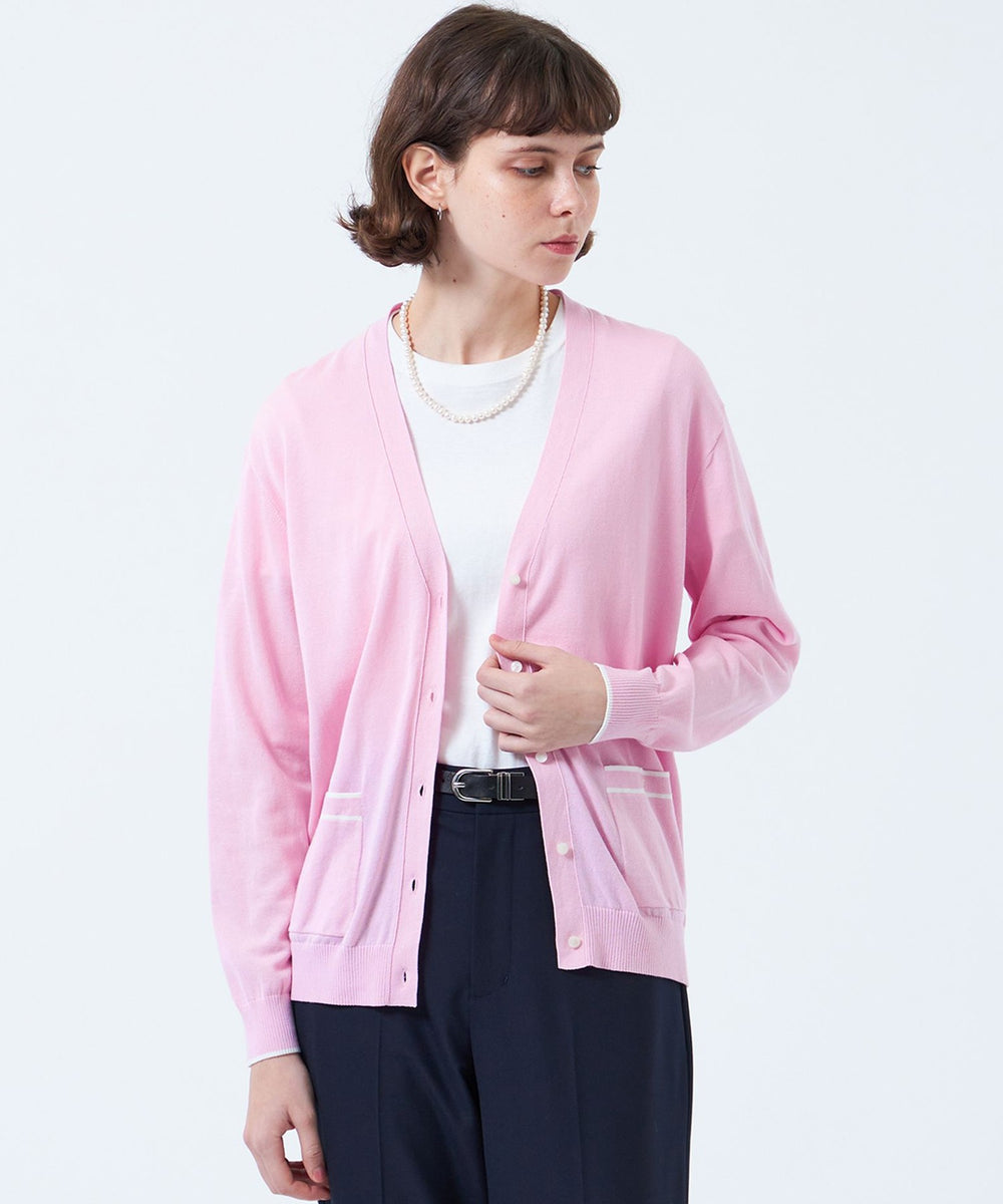 コットン素材のナチュラルで軽やかな印象のハイゲージカーディガン。