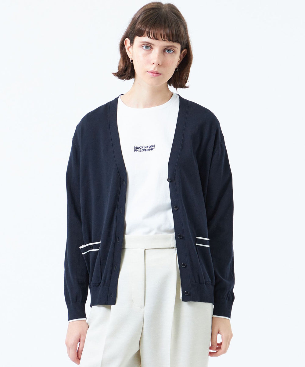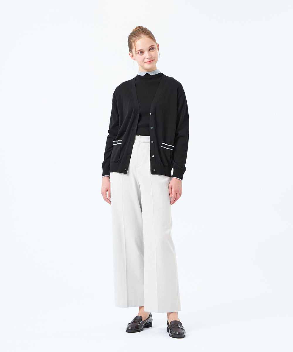 ブラウスやカットソーに重ねたスタイリングはもちろん、同素材のクレリックカラーニット(品番:H5N52570) とのアンサンブル着用もおすすめです。季節の変わり目から夏場の冷房対策にも重宝します。