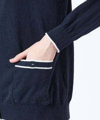 シンプルなVネックデザインにライントリミングがアクセントをプラス。