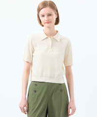 シャリ感のある綿素材を使用した、MPロゴマーク入りショート丈ニットポロ。