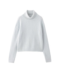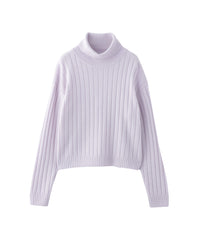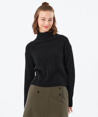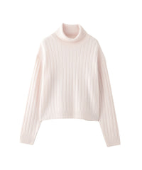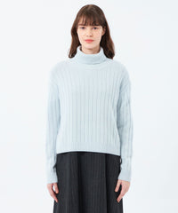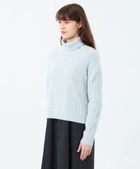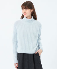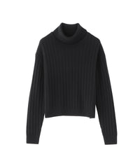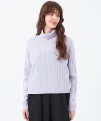 柔らかな手触りのワイドリブタートルネックニット。