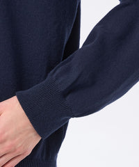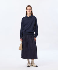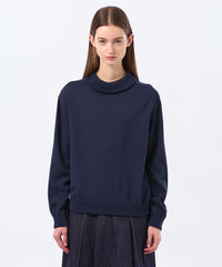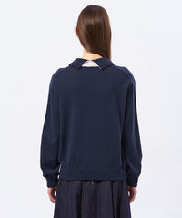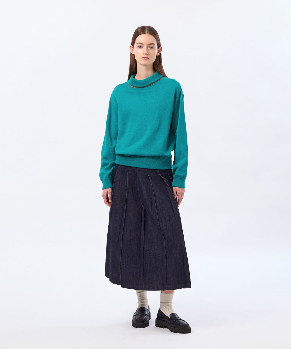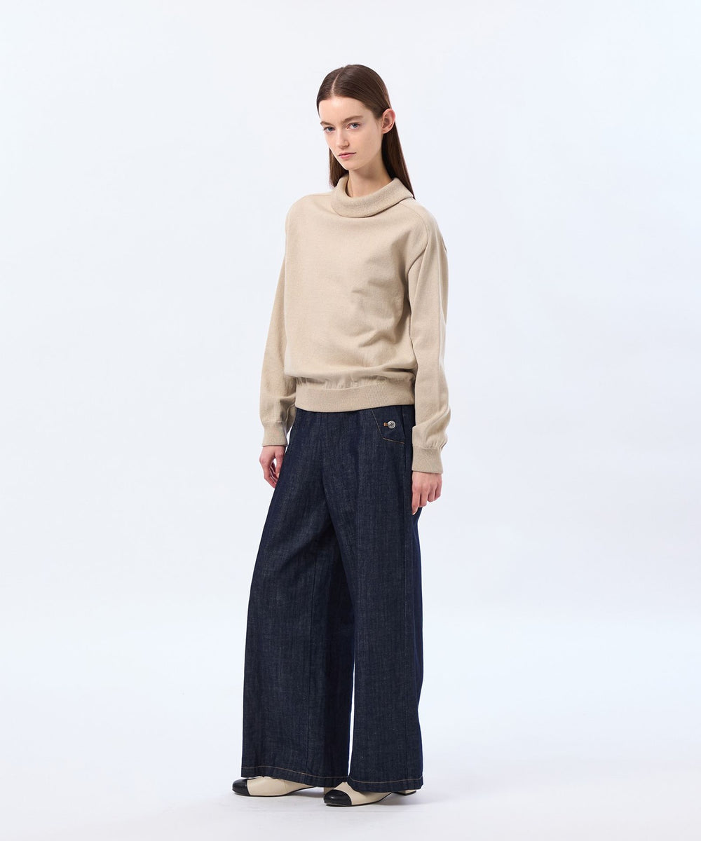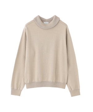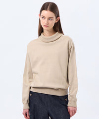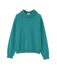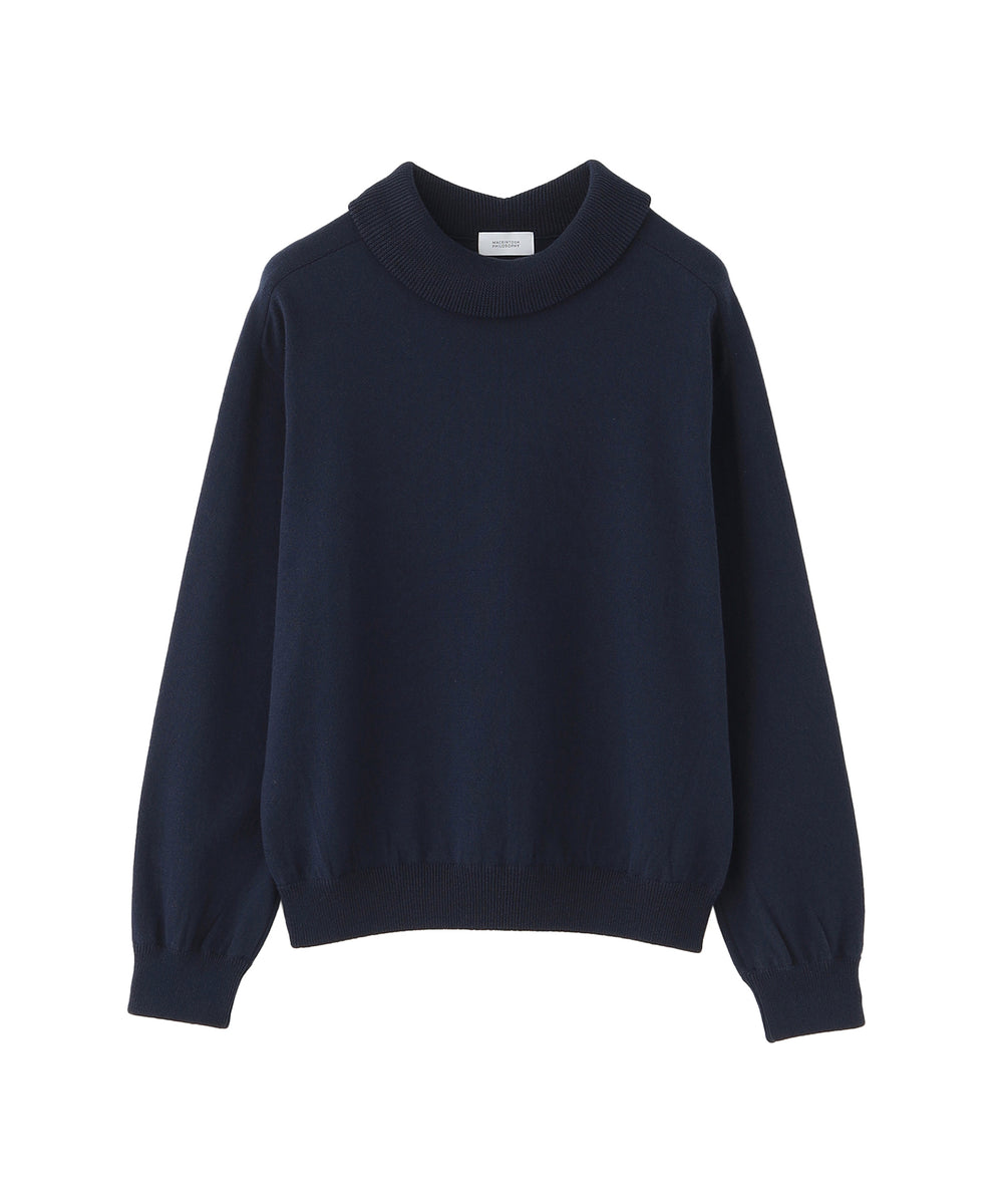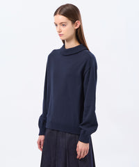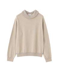 襟、袖口、裾の裏側にバイカラーを施した、エポーレットスリーブのニットプルオーバー。
