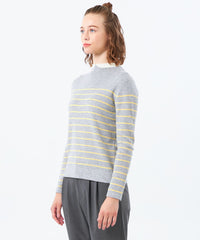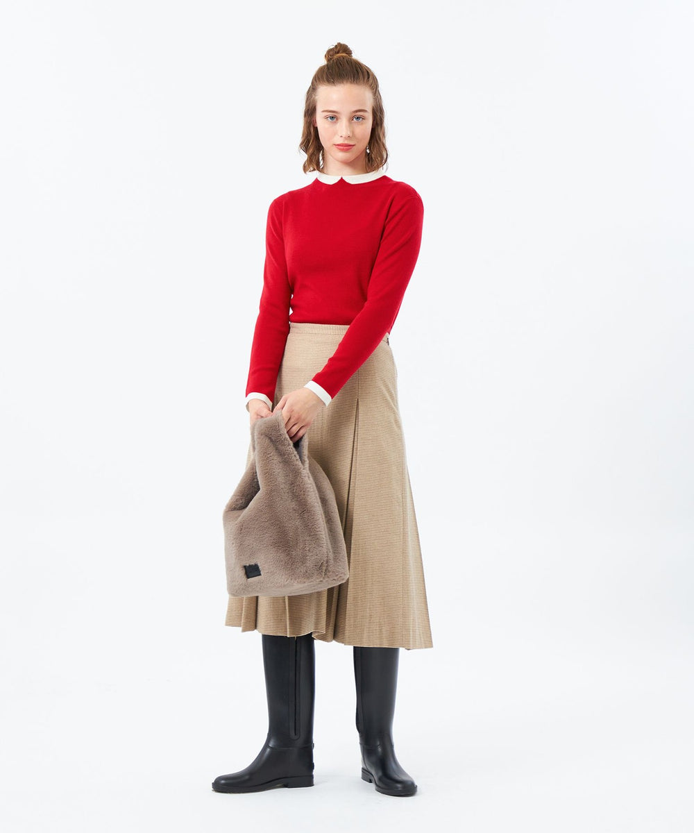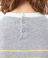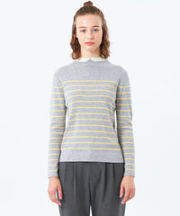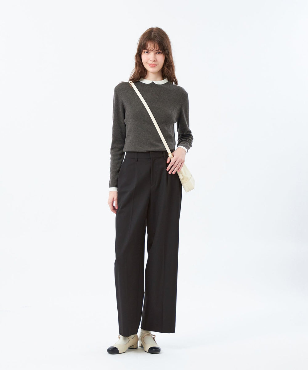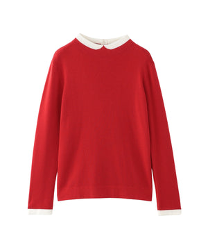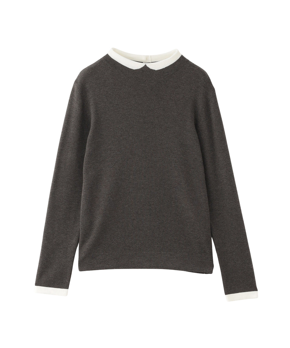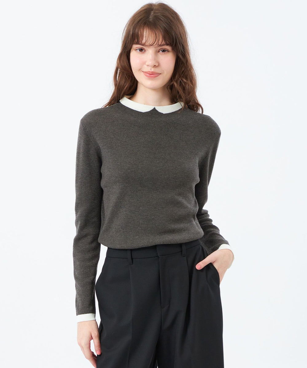2015年登場以来愛され続けているクレリックカラーニットは、首元の衿に見立てた切り替えが特徴。袖口の配色もポイントです。