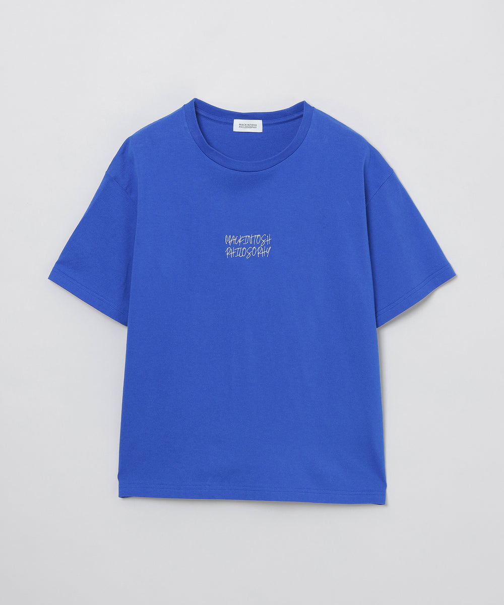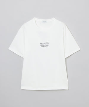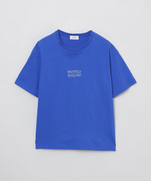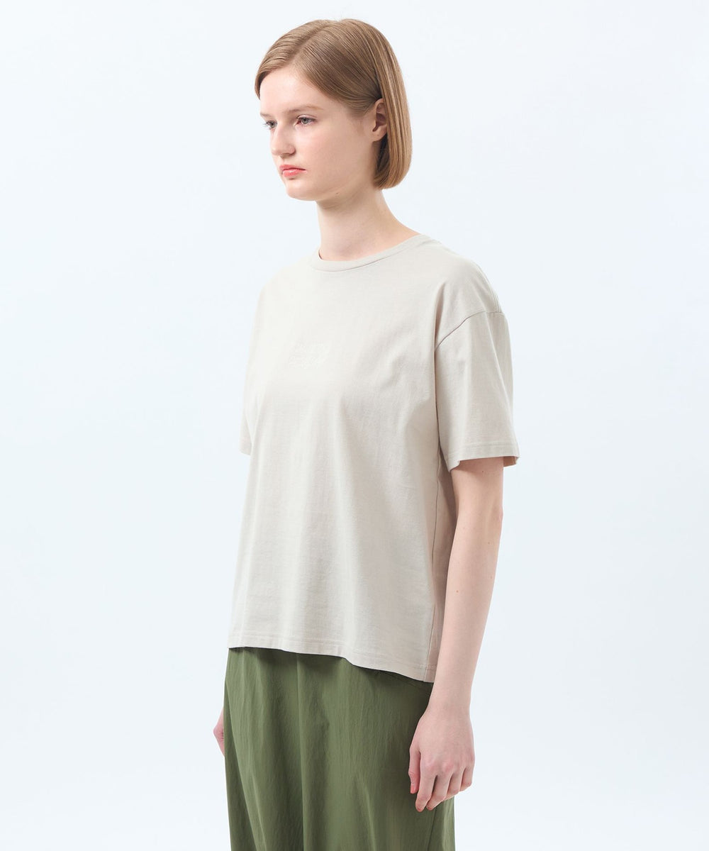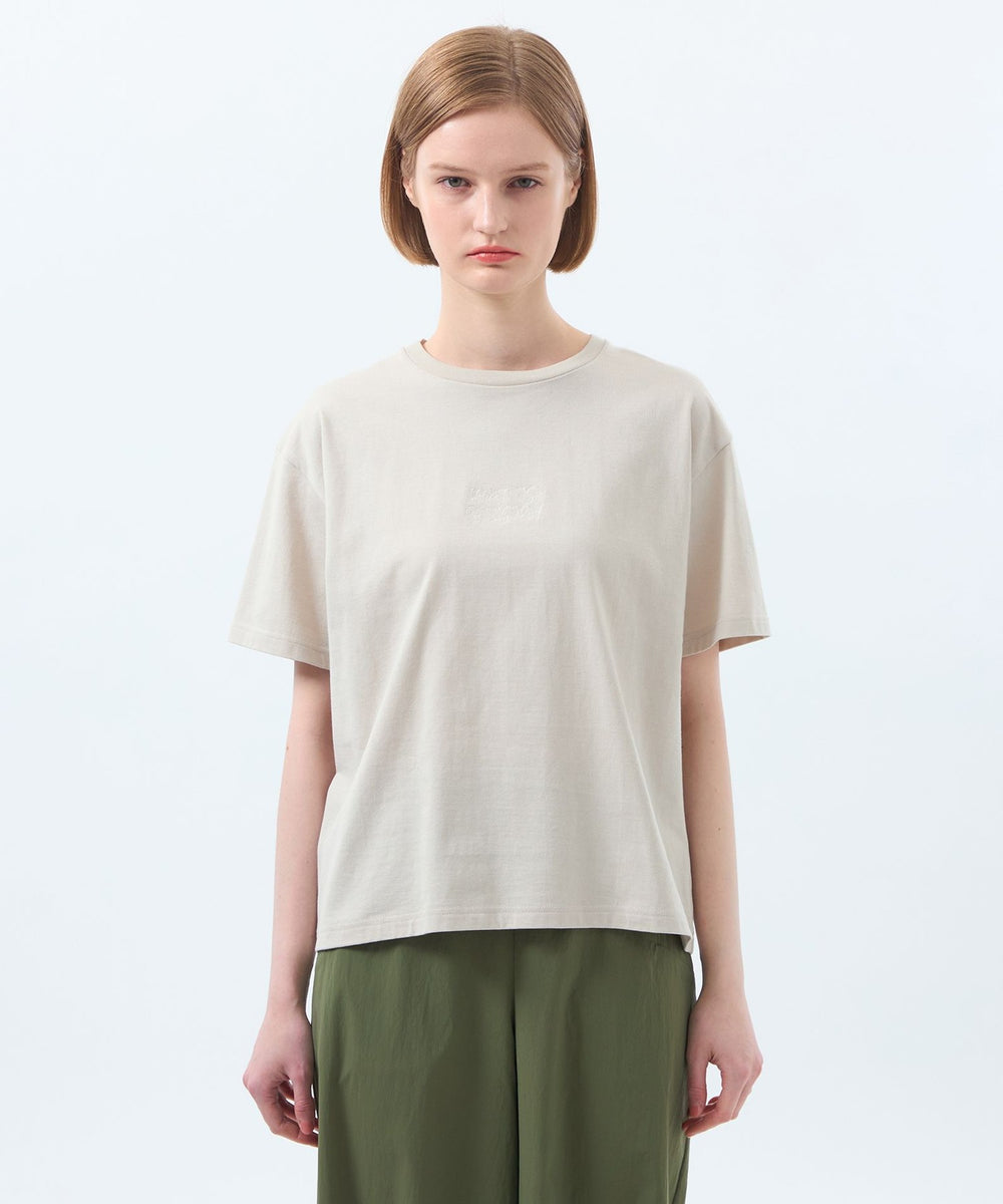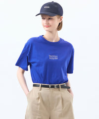 さりげない手書き調のロゴが映えるロゴ刺しゅうTシャツ。