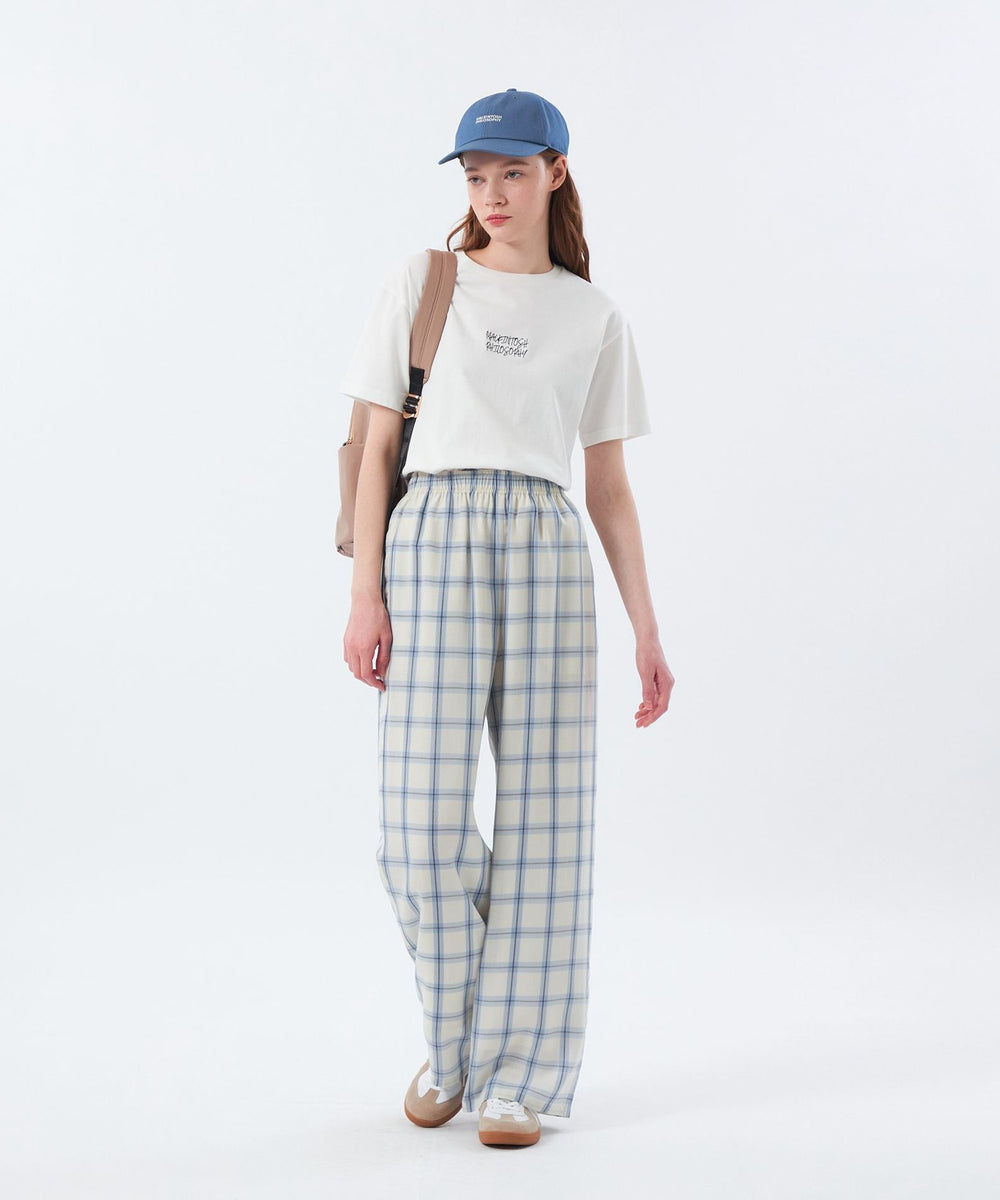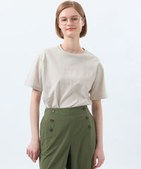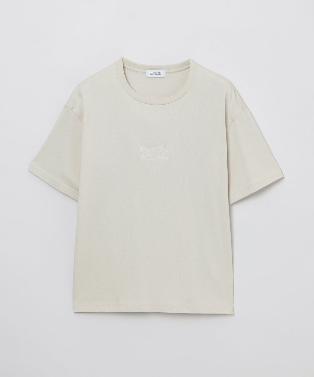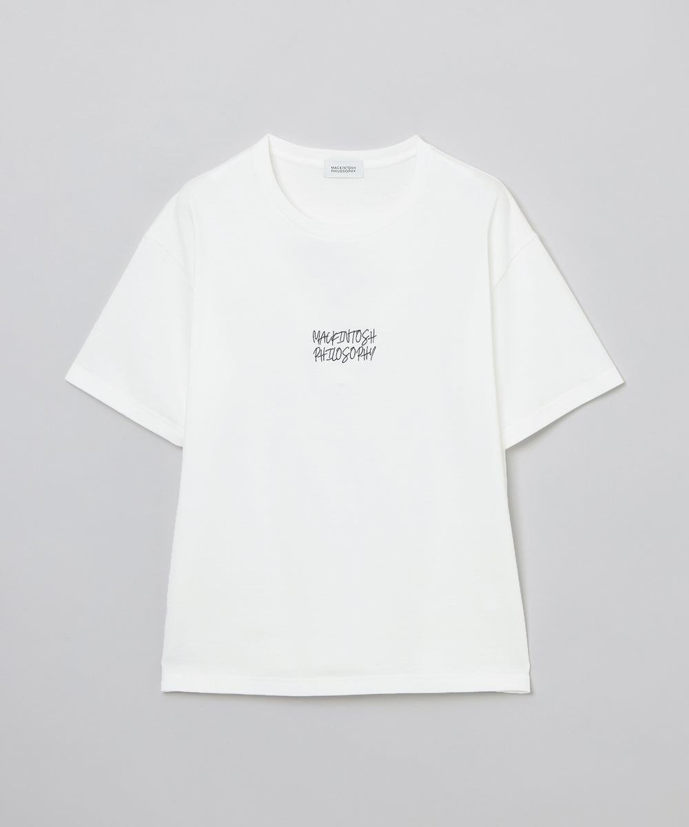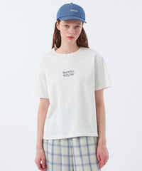 さりげない手書き調のロゴが映えるロゴ刺しゅうTシャツ。