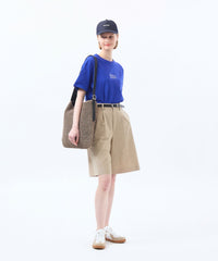 ゆるすぎないジャストなサイズ感はカジュアルダウンしすぎない大人な印象に。ボトムスインもアウトも決まる丈感に仕上げています。