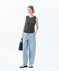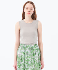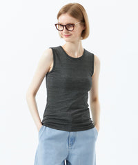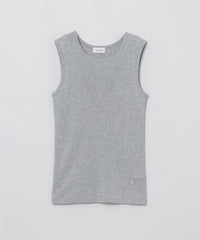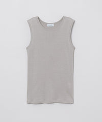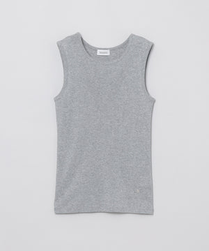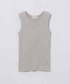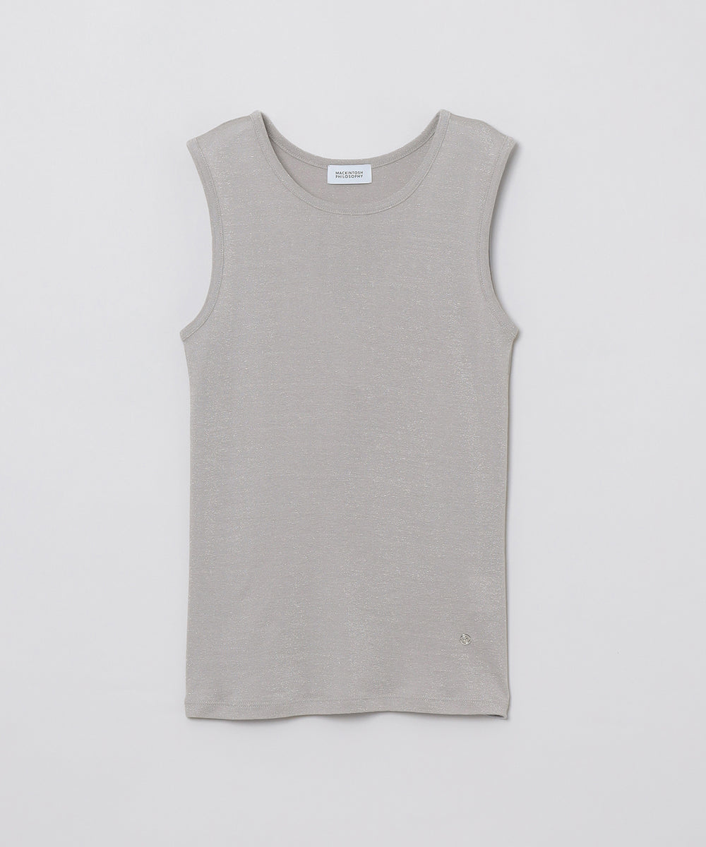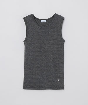 ほどよい光沢のラメ素材を使用したベーシックなタンクトップ。