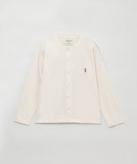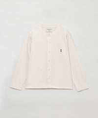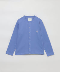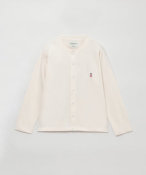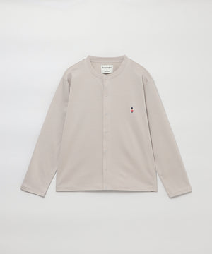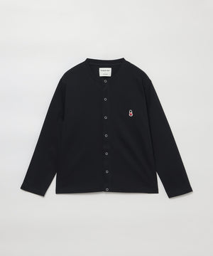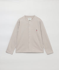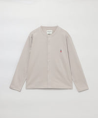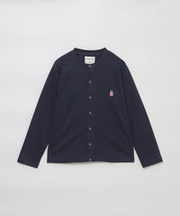 クルーネックの長袖カーディガン。カジュアルなデザインながら、素材がクリーンなのできちんと感を兼ね備えた1着。パンツでもスカートでも合わせやすい着丈です。