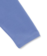 細番手の綿をハイゲージで編みたて、特殊加工を施すことで目の詰まったフラットできれいな表面感に仕上げたポンチ素材。上品な光沢感と、程よいストレッチ性のある着心地の良さが特徴です。