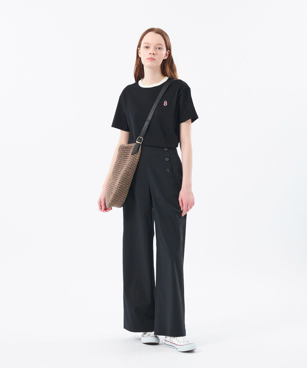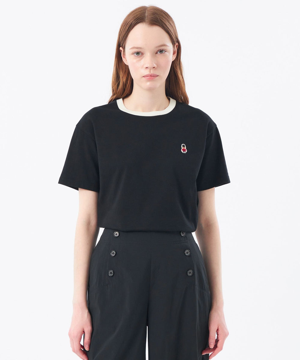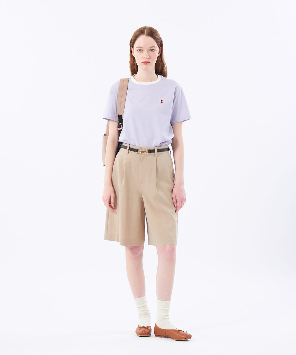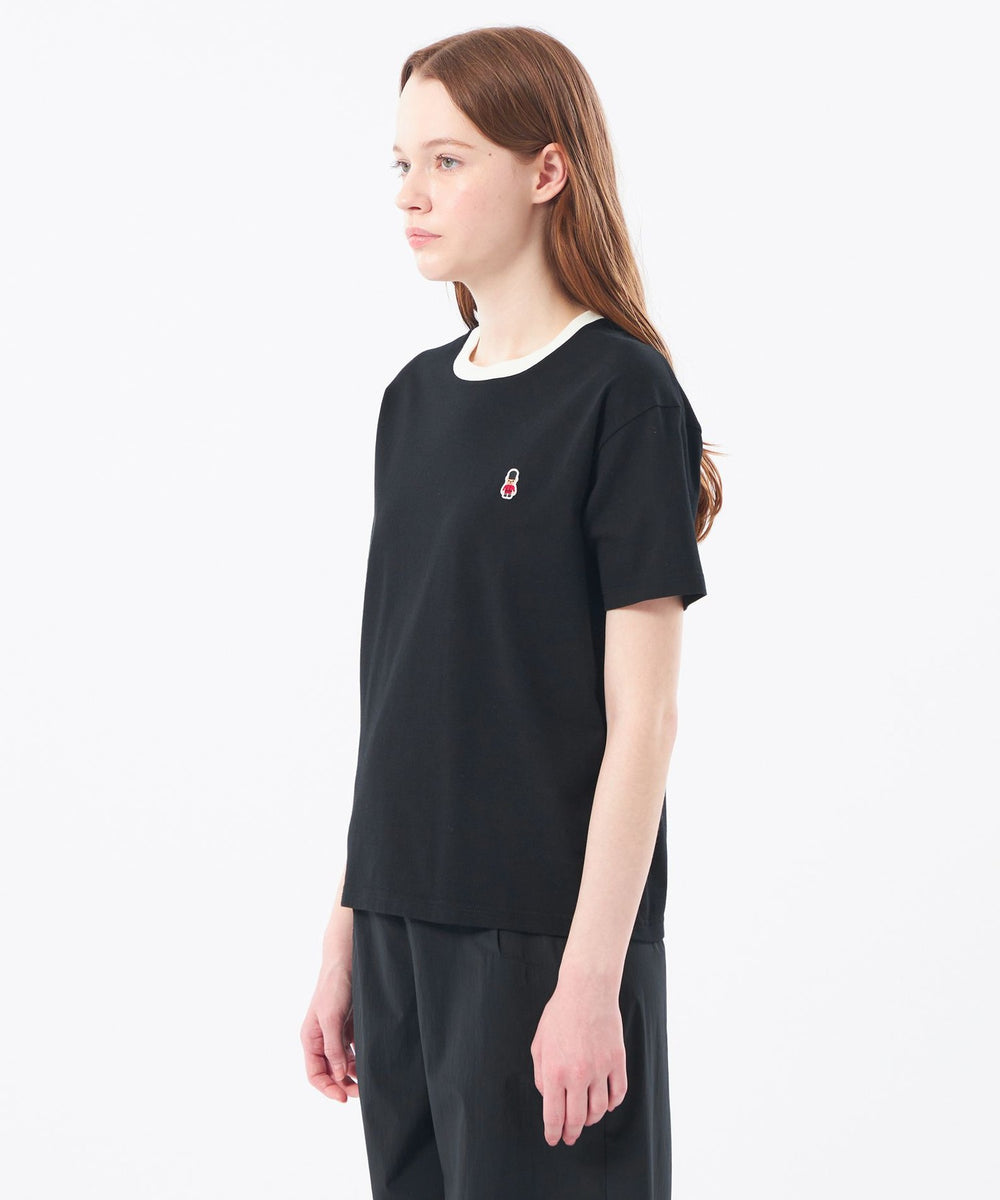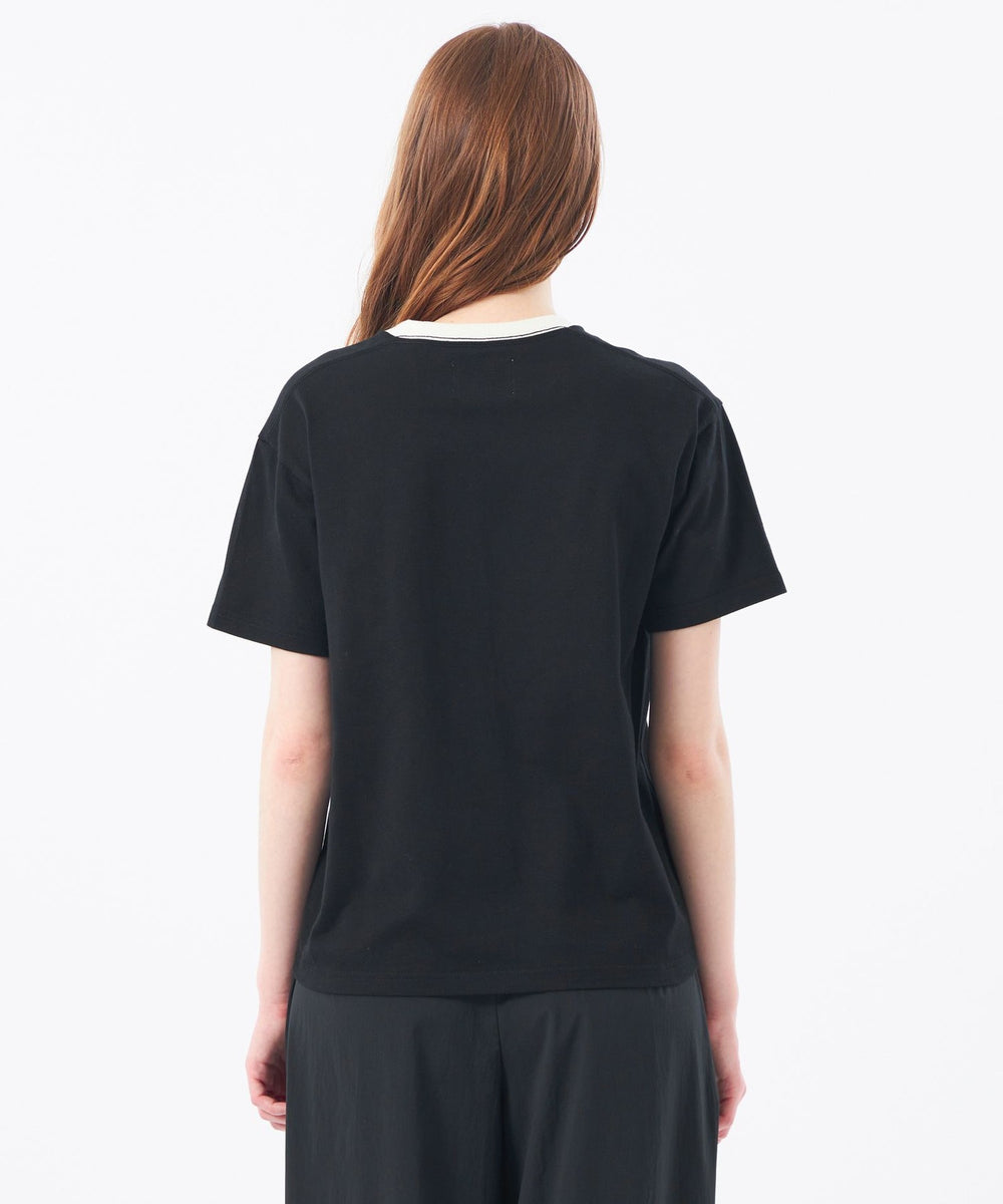 襟元のバイカラーがワンポイントのベーシックな半袖Tシャツ。