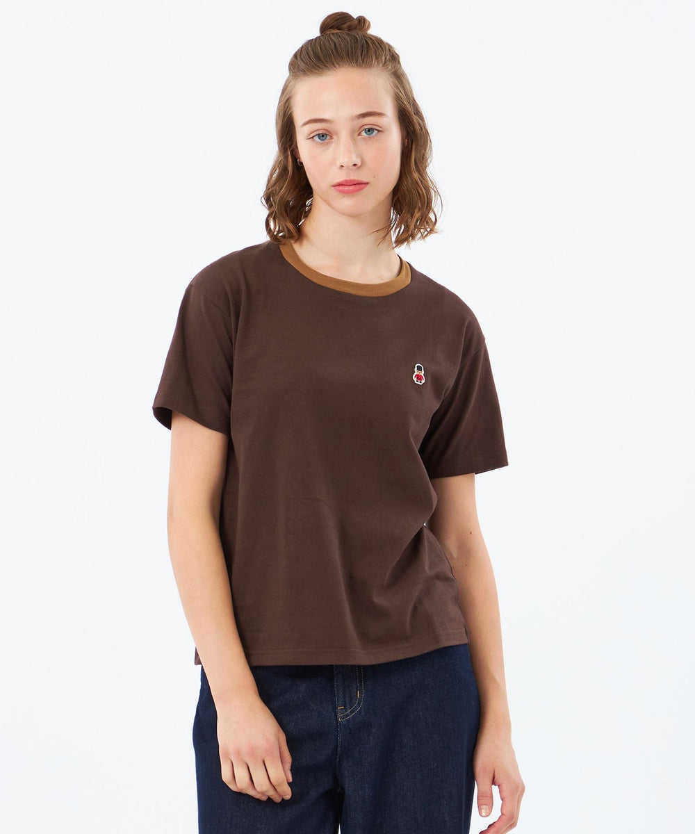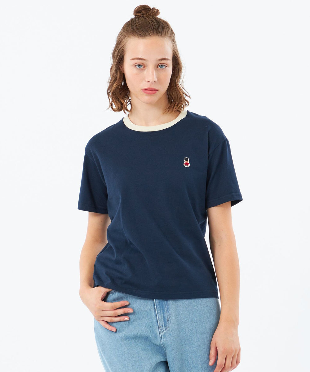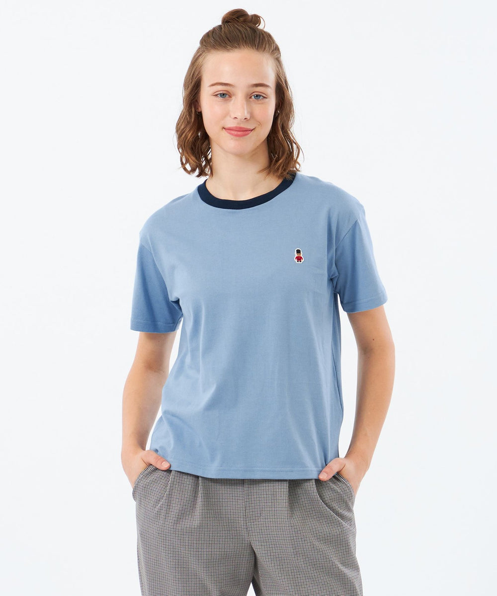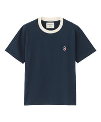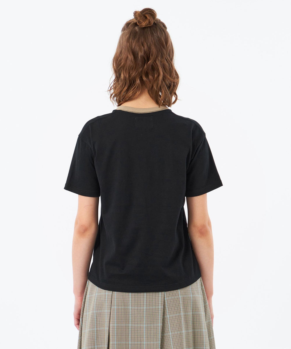 襟元のバイカラーがワンポイントのベーシックな半袖Tシャツ。