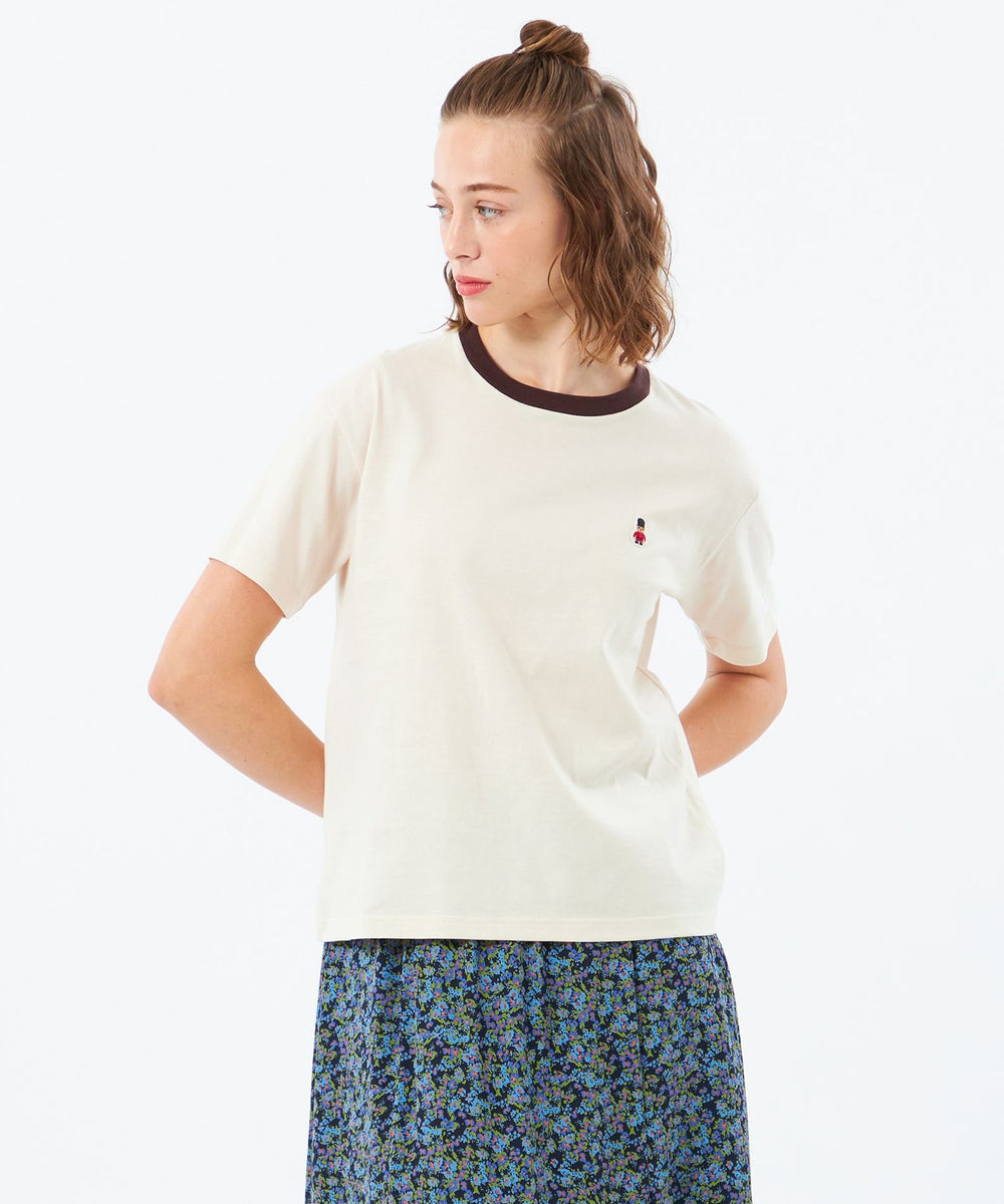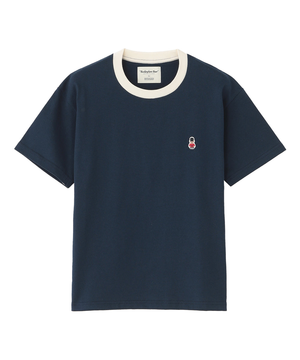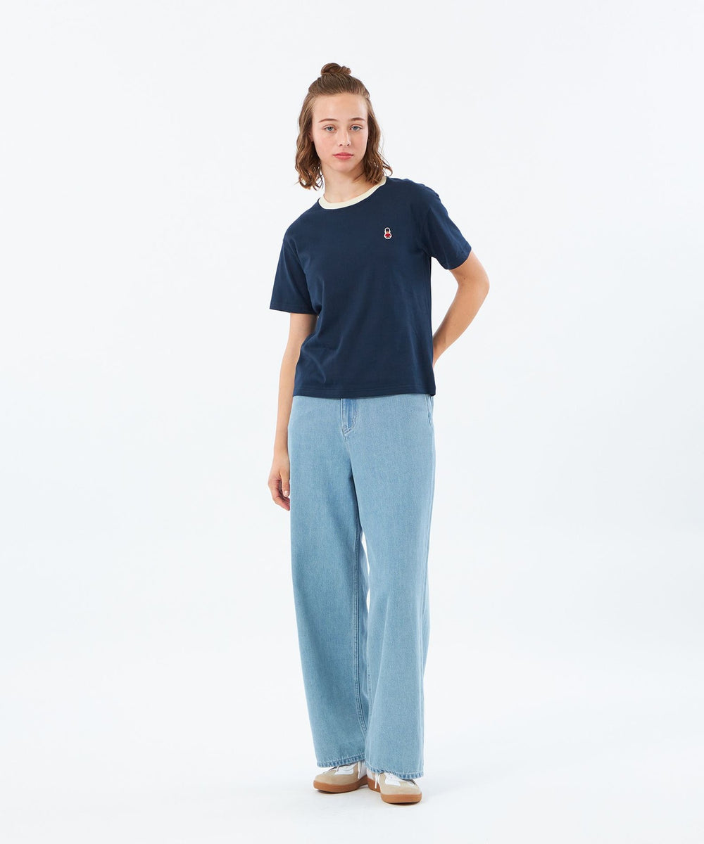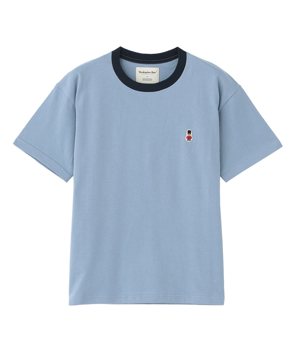 襟元のバイカラーがワンポイントのベーシックな半袖Tシャツ。