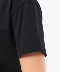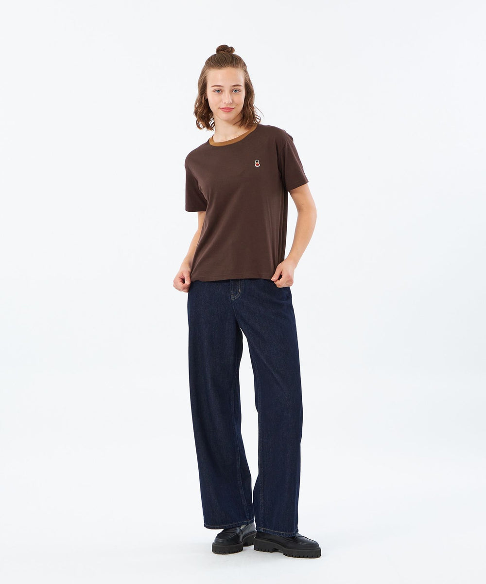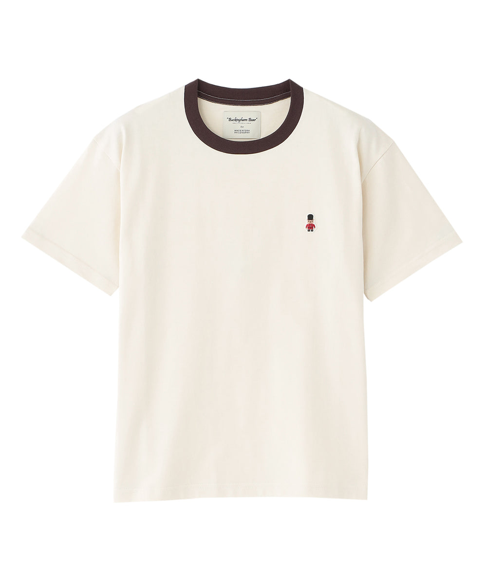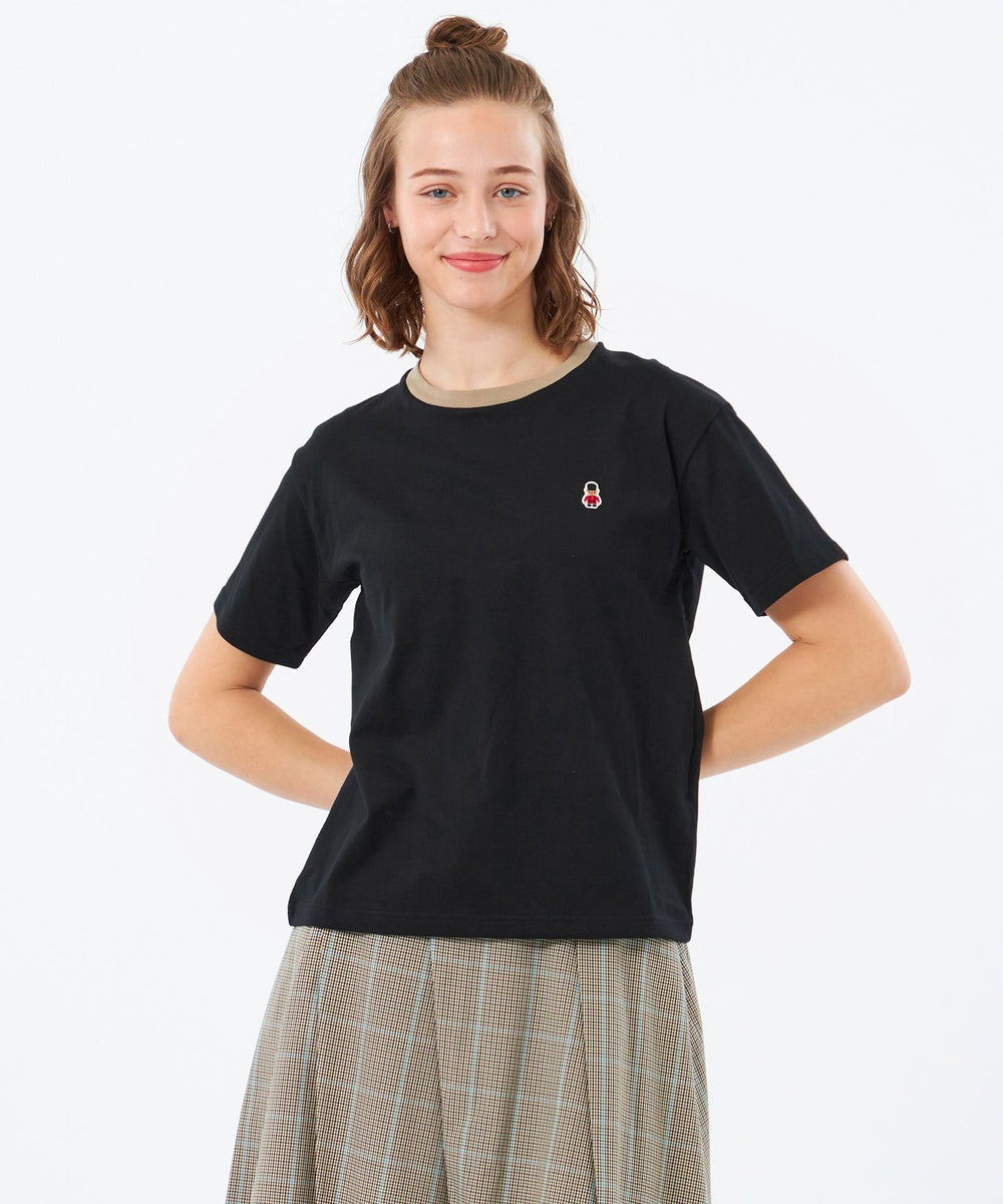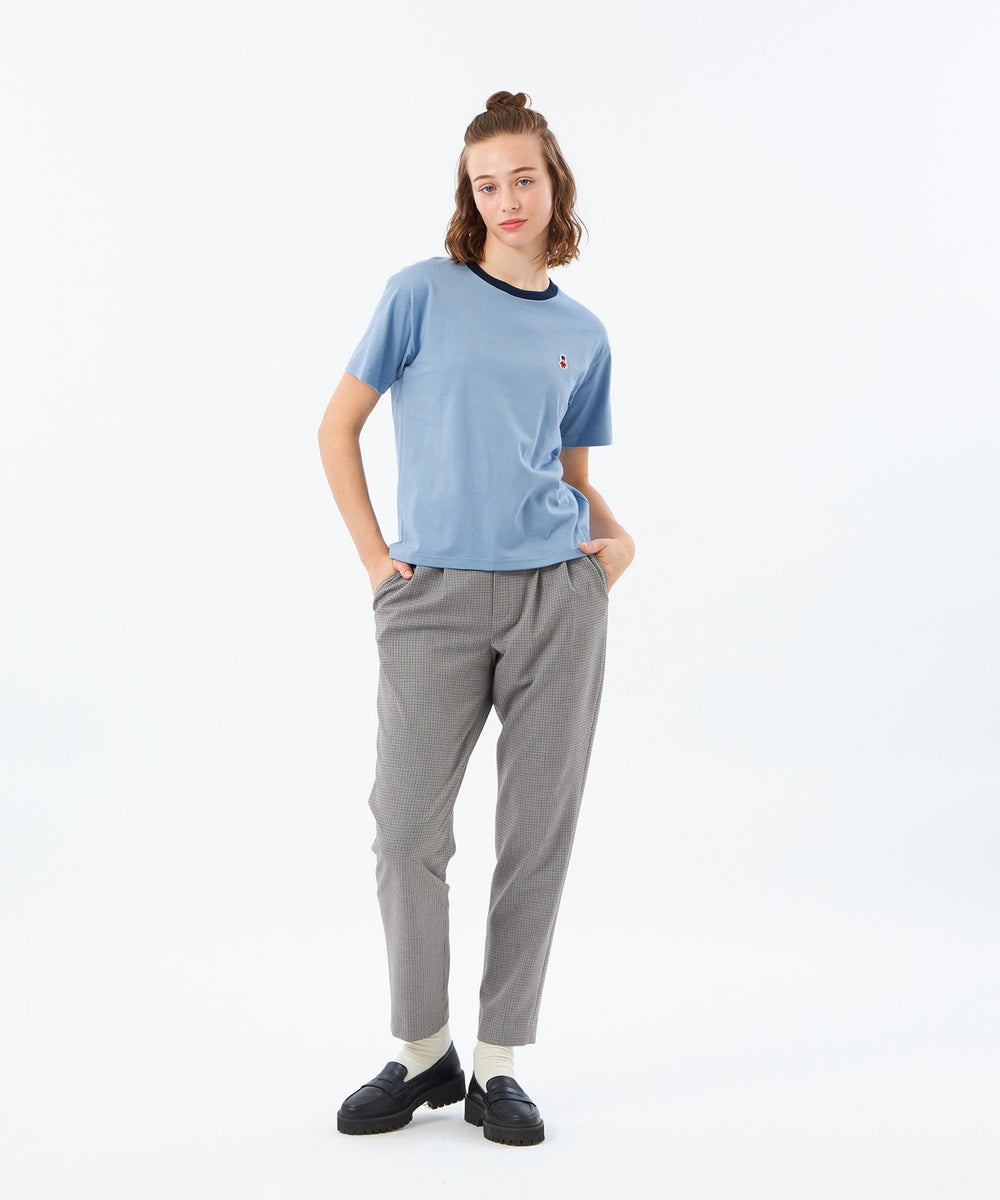 襟元のバイカラーがワンポイントのベーシックな半袖Tシャツ。