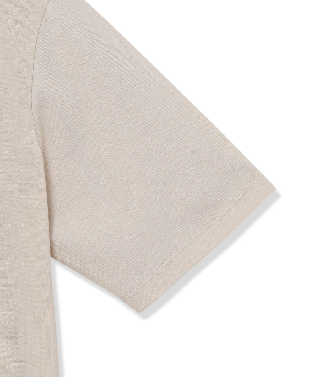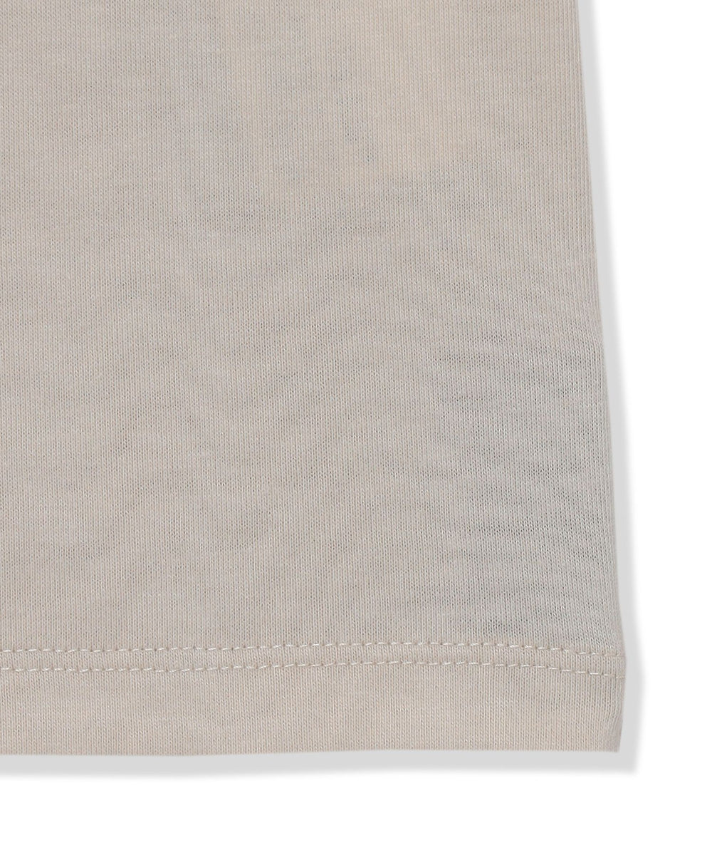 身体に張り付き過ぎず、適度なゆとりのあるサイズ感と汎用性の高いミニマルななデザインで、着回し力抜群の一枚です。パンツなどにタックインしてすっきりとした着こなしもおすすめです。