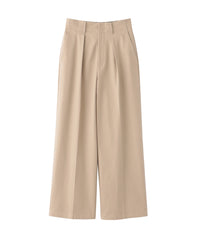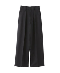 <深めのインタックデザインが目を惹くワイドパンツ>