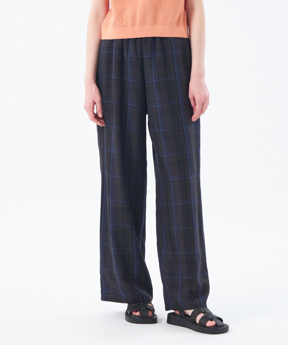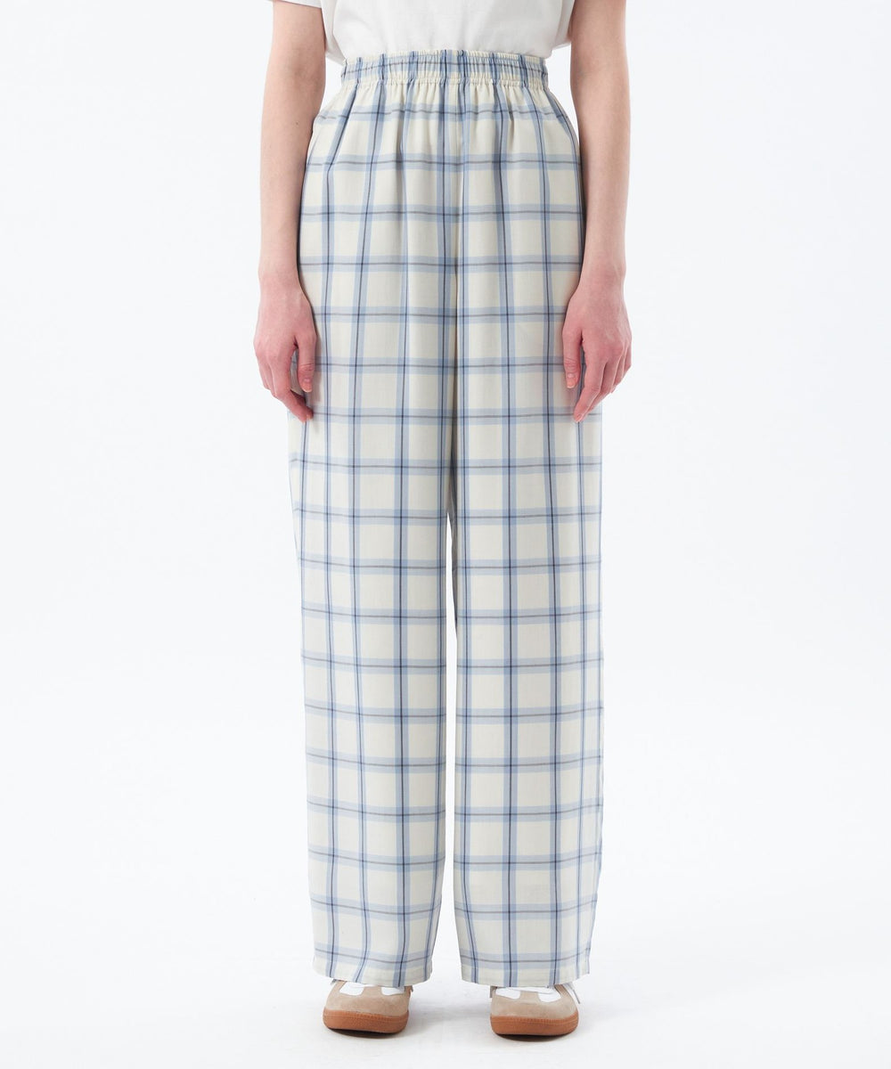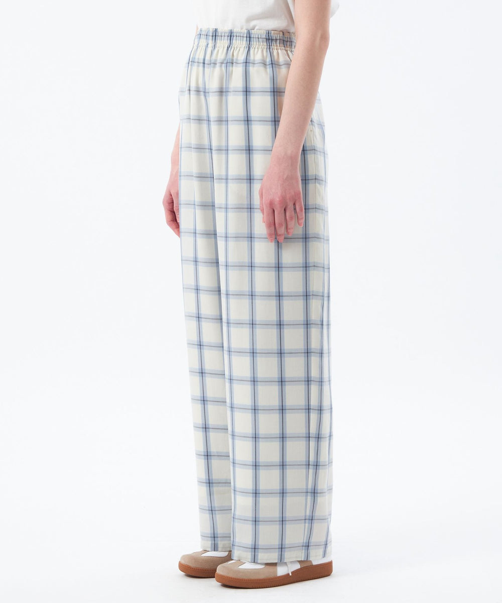 汗ばむ季節にも、一枚で抜け感のあるトラッドスタイルが完成する、チェック柄イージーパンツ。