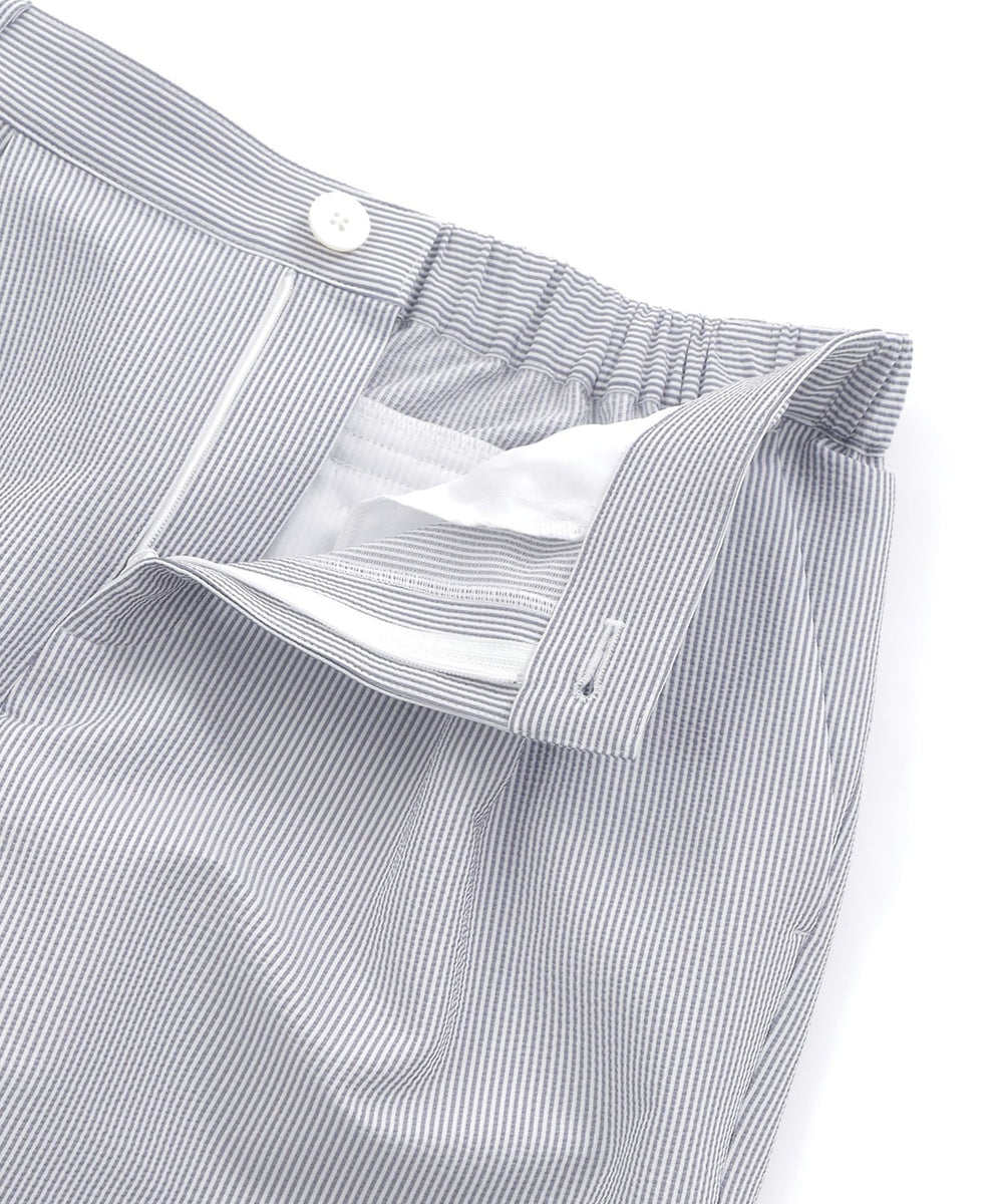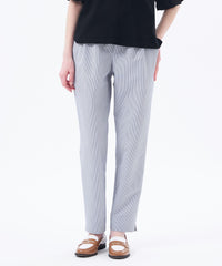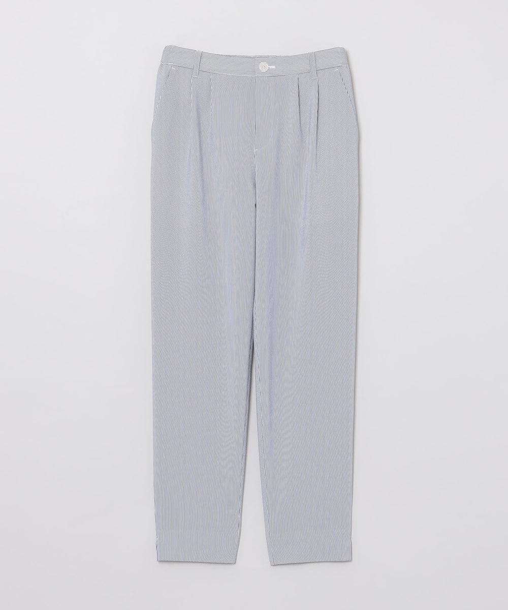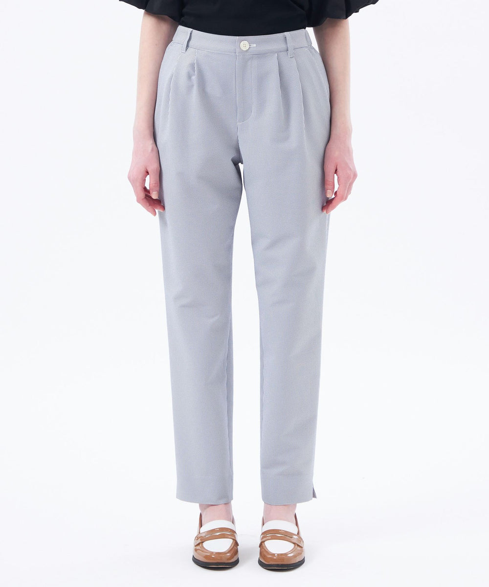 <清涼感たっぷりなサッカー素材のテーパードパンツ>