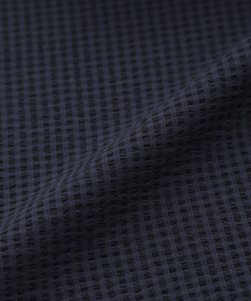 軽さとソフトさが特徴のサッカー素材。凹凸のある素材で肌離れの良いさらっとしたタッチが魅力。汗ばむ季節に最適です。