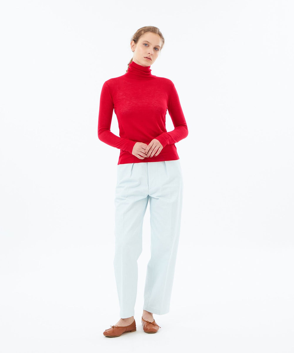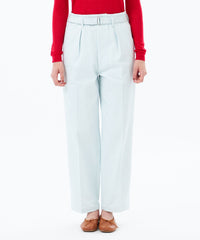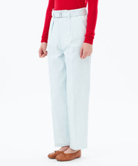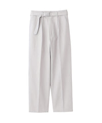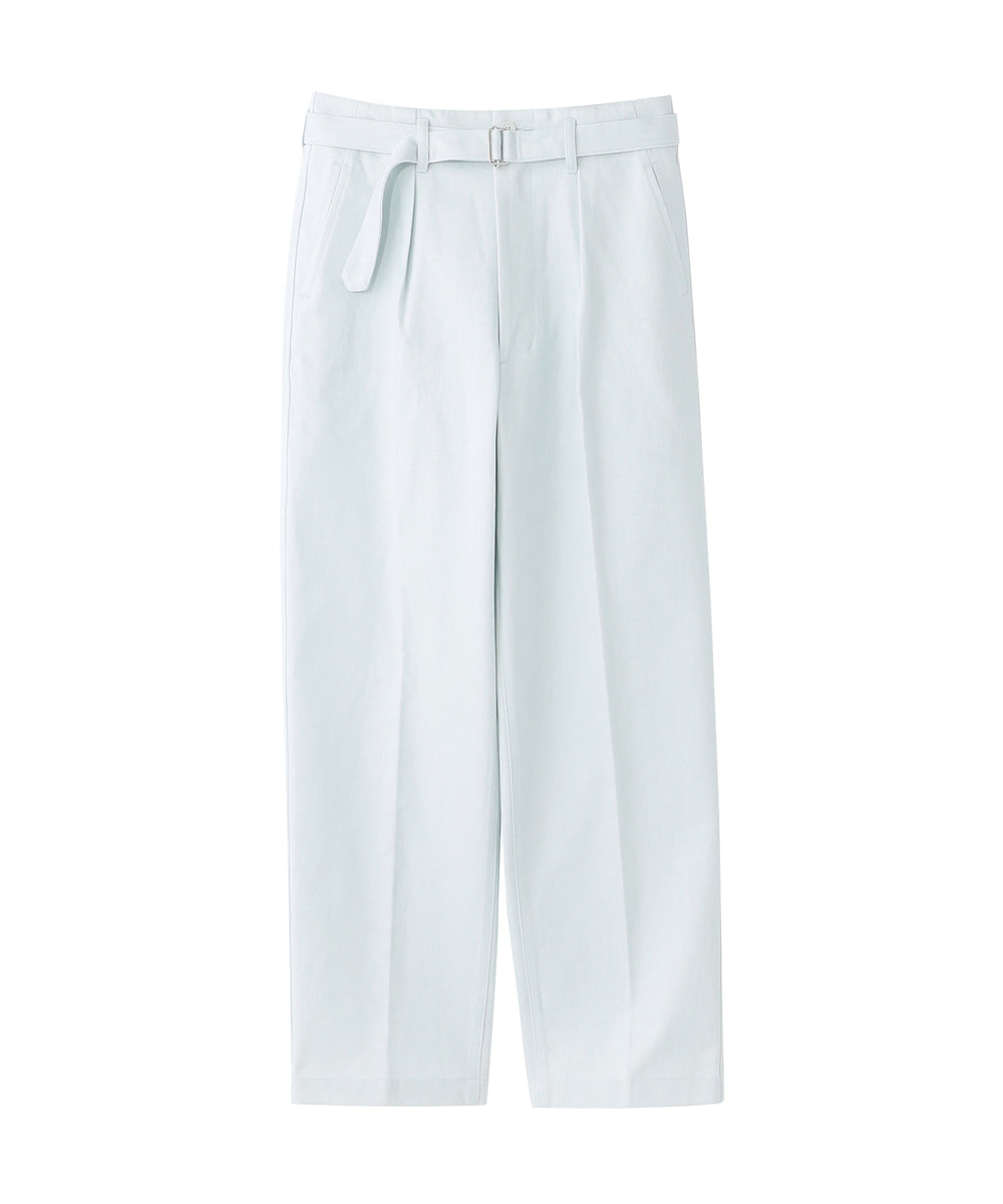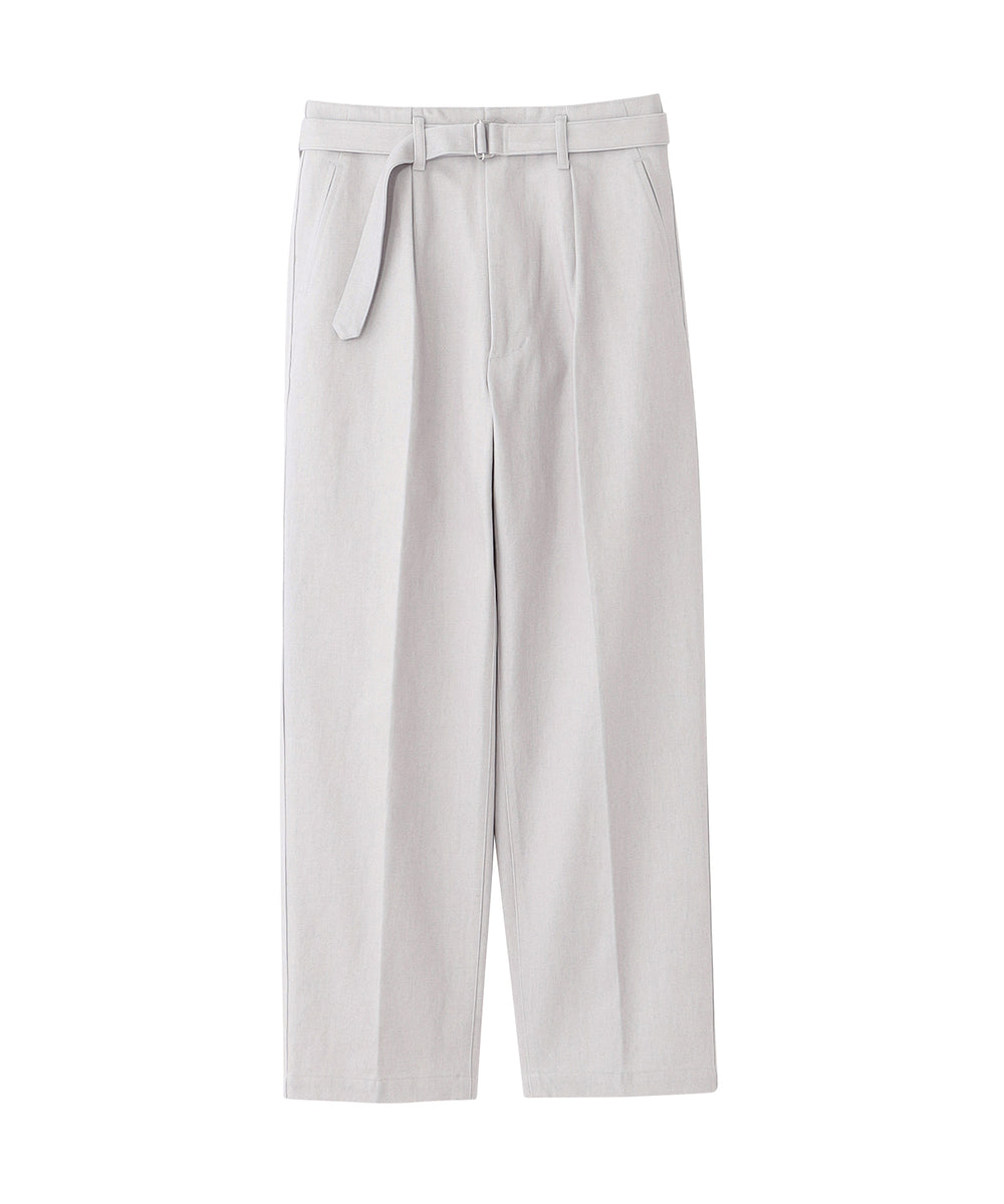 共布ベルトのついたヴィンテージのモーターサイクルパンツからインスパイアされたミリタリーパンツ。前身ポケットや後ろウエストのVスリットなどミリタリーを感じさせるディテールはそのままに、きれいなワイドストレートシルエットに落とし込んだ拘りの詰まったデザインパンツです。共布ベルトがアクセントになっていて、コーディネイトにも取り入れやすいカジュアルパンツになっています。