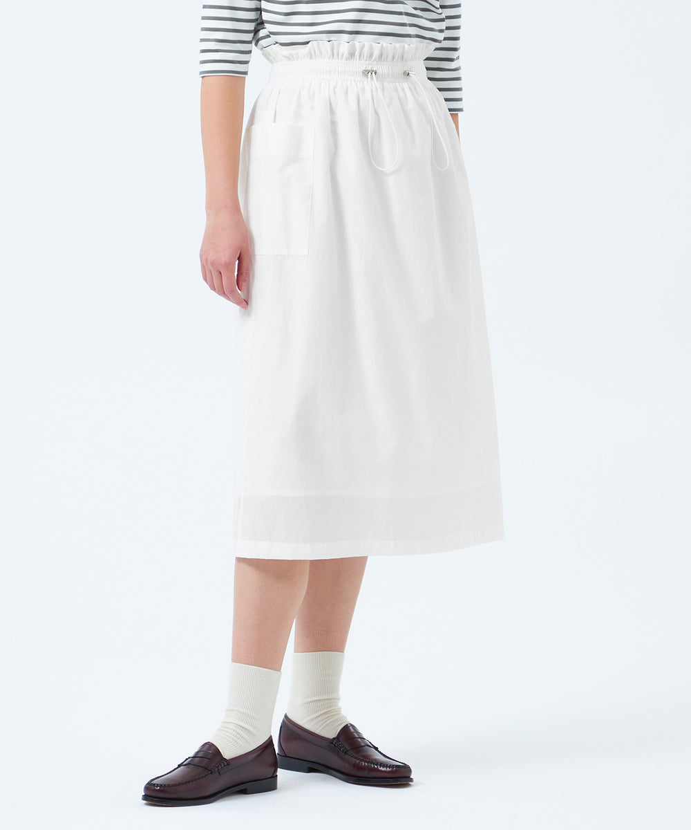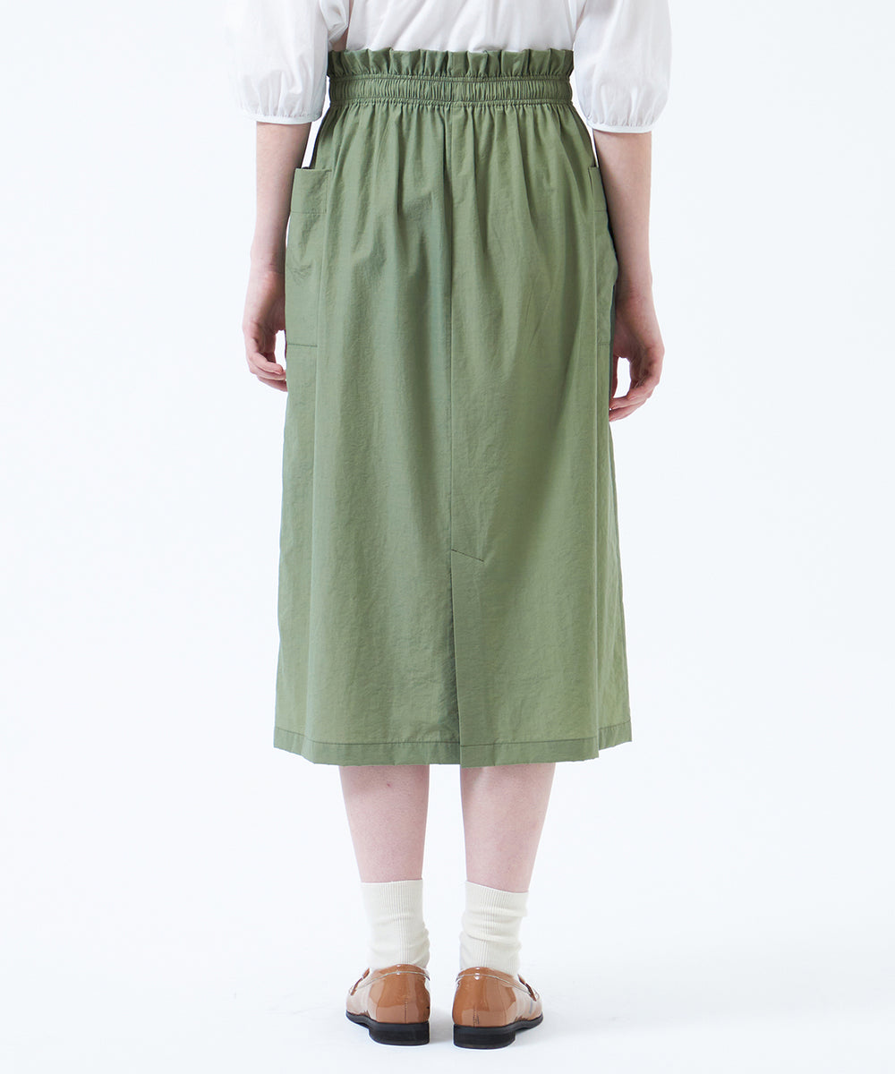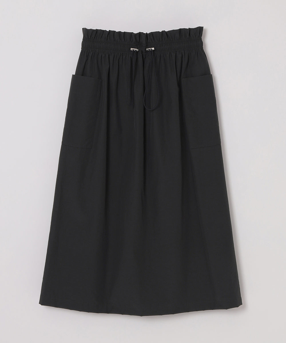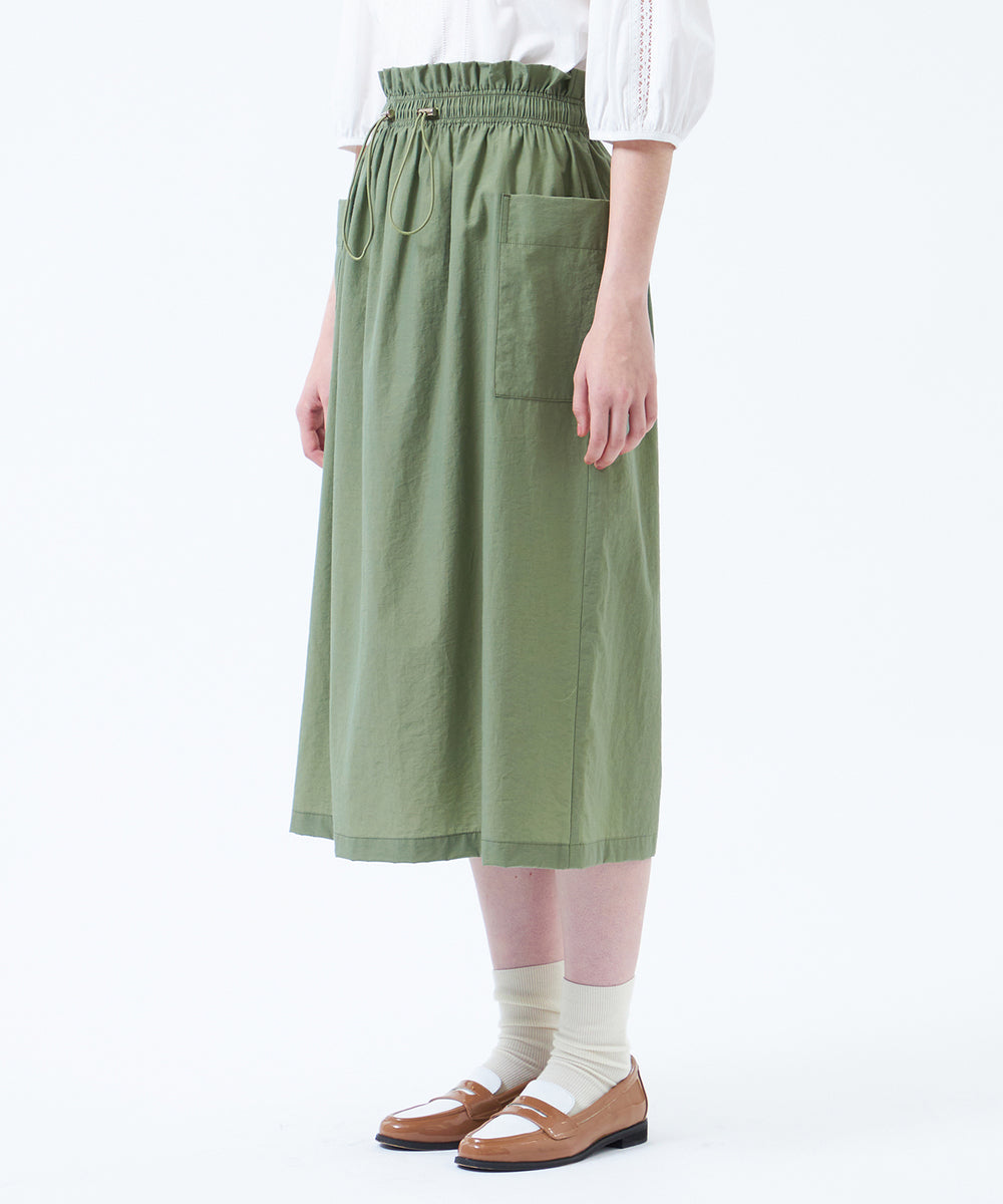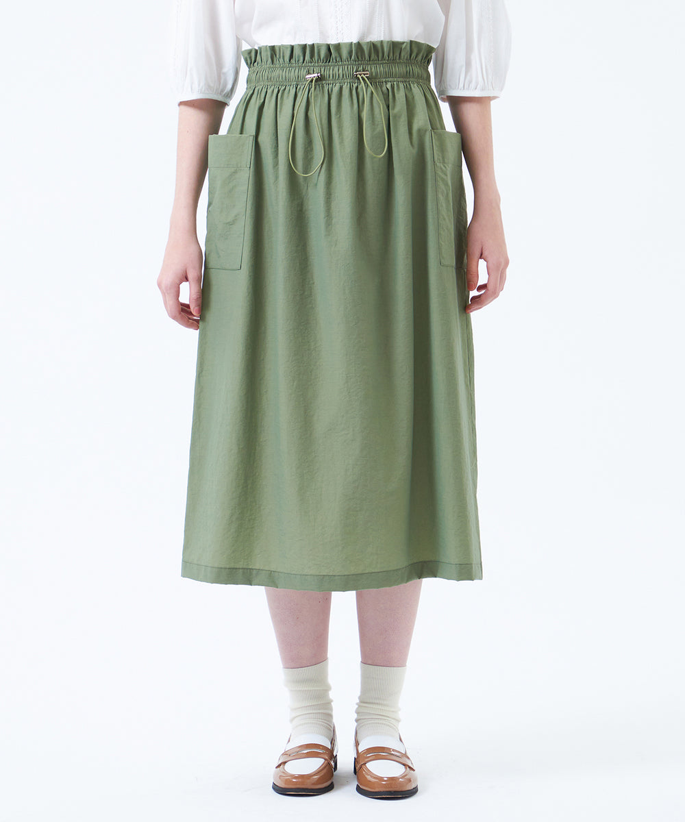 大きめのサイドポケットとウエストギャザーがポイントのドロストスカート。