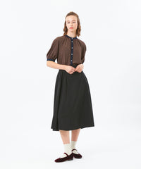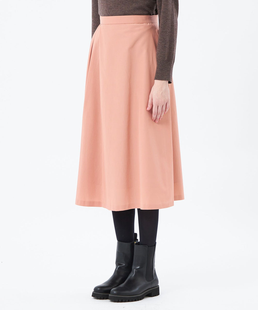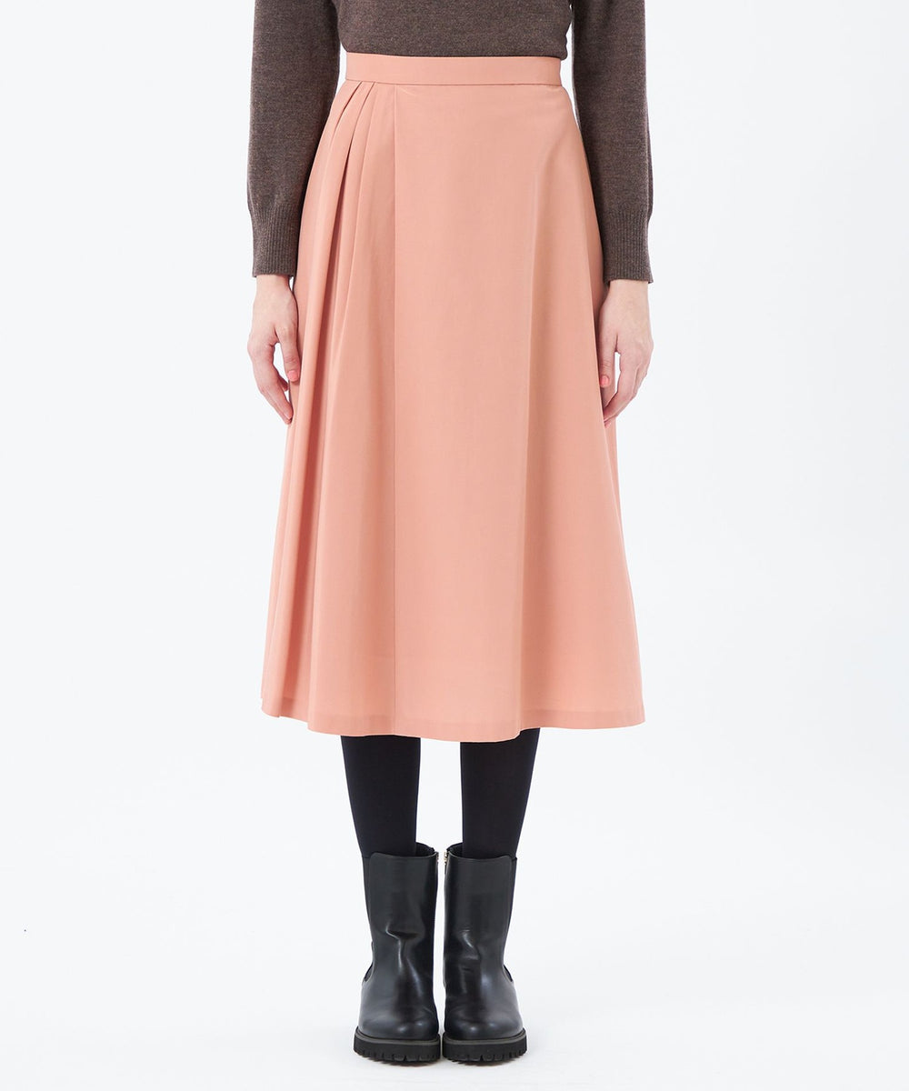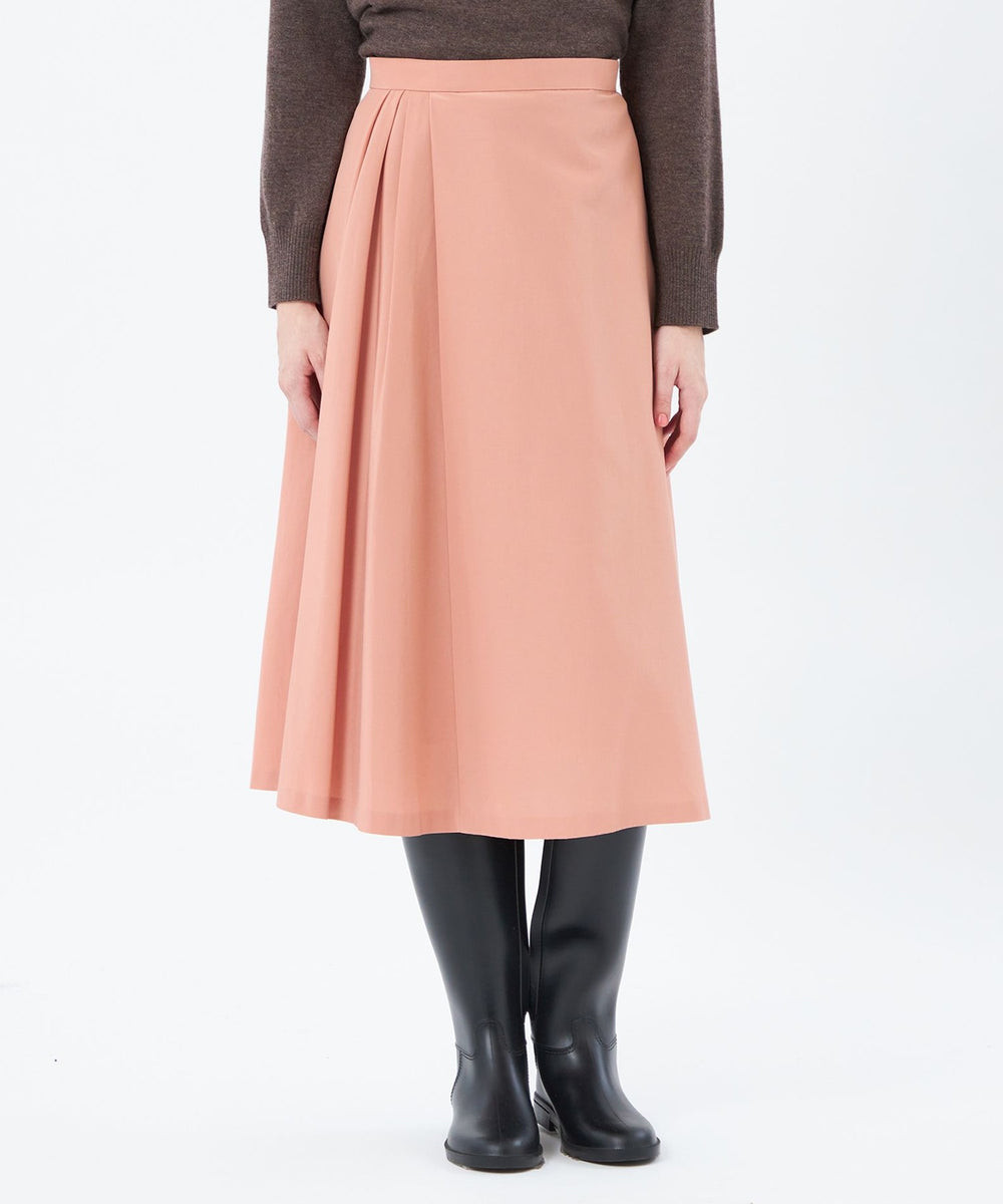 サイドにタックを入れた、アシンメトリーなデザインが特徴のフレアスカート。