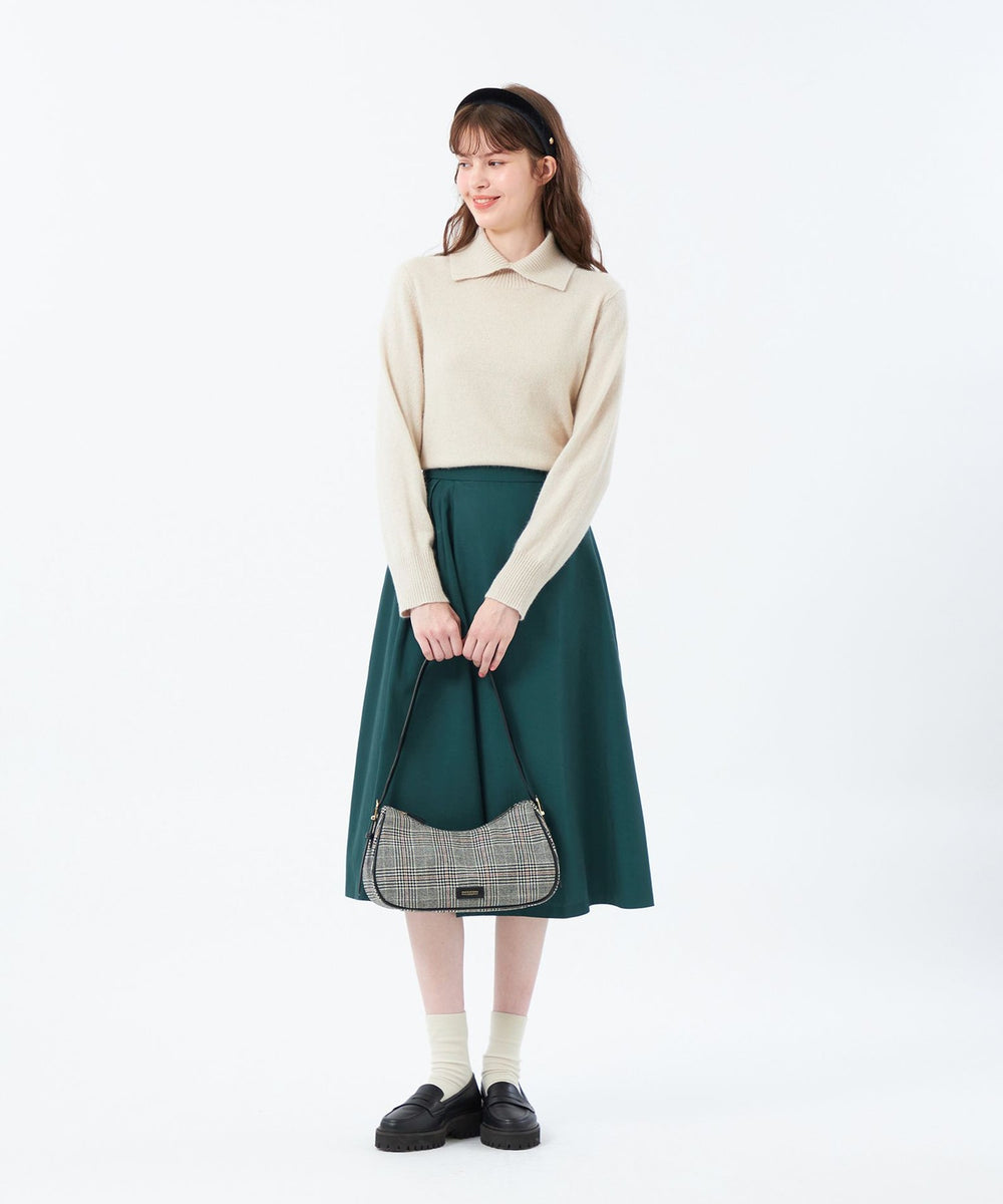 程よく光沢のあるソリッドな素材なので、秋冬は毛足のあるニットなどと合わせてもコーディネートをすっきりとまとめてくれます。キレイ目ブラウスと合わせてドレッシーに着こなすのもおすすめです。
