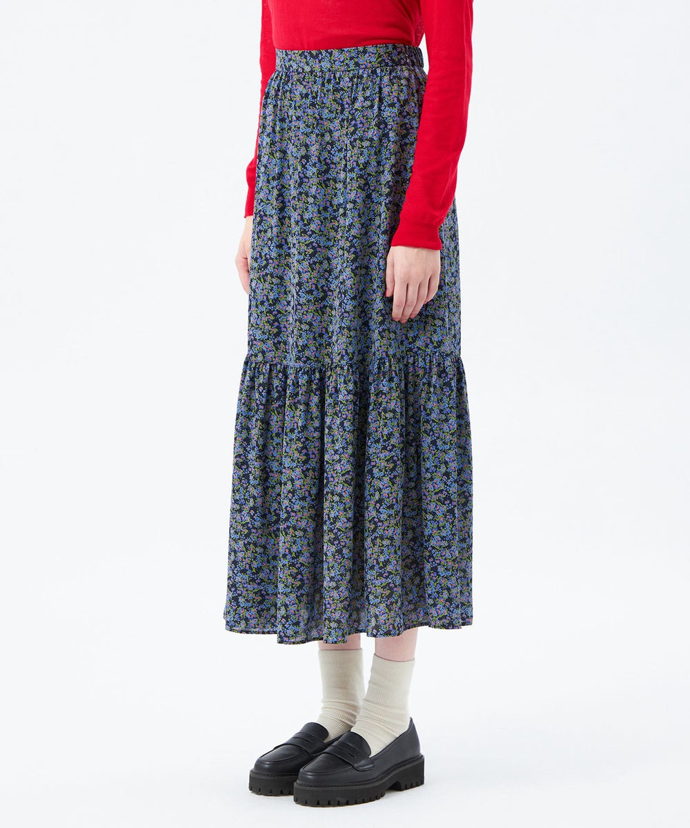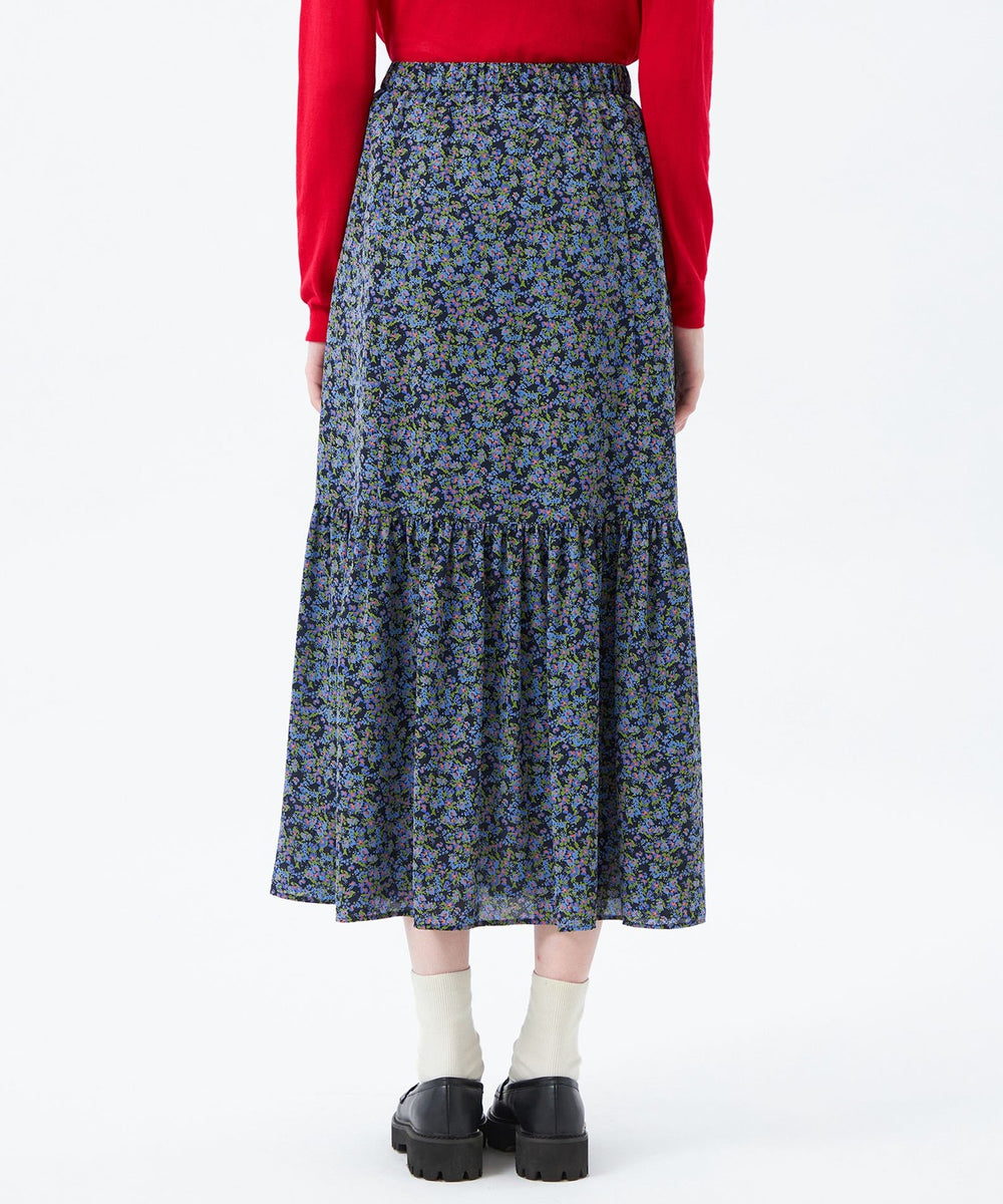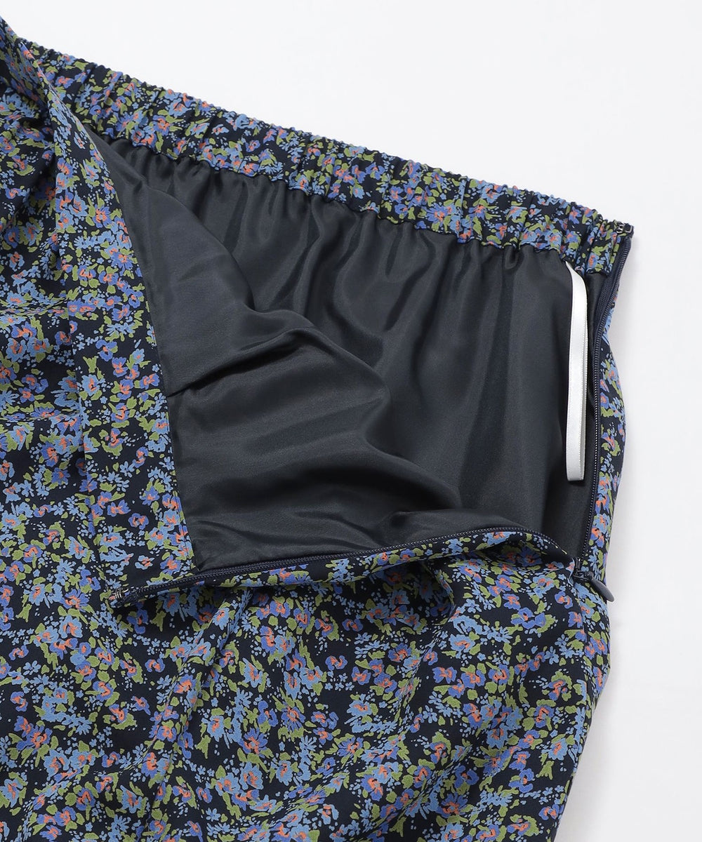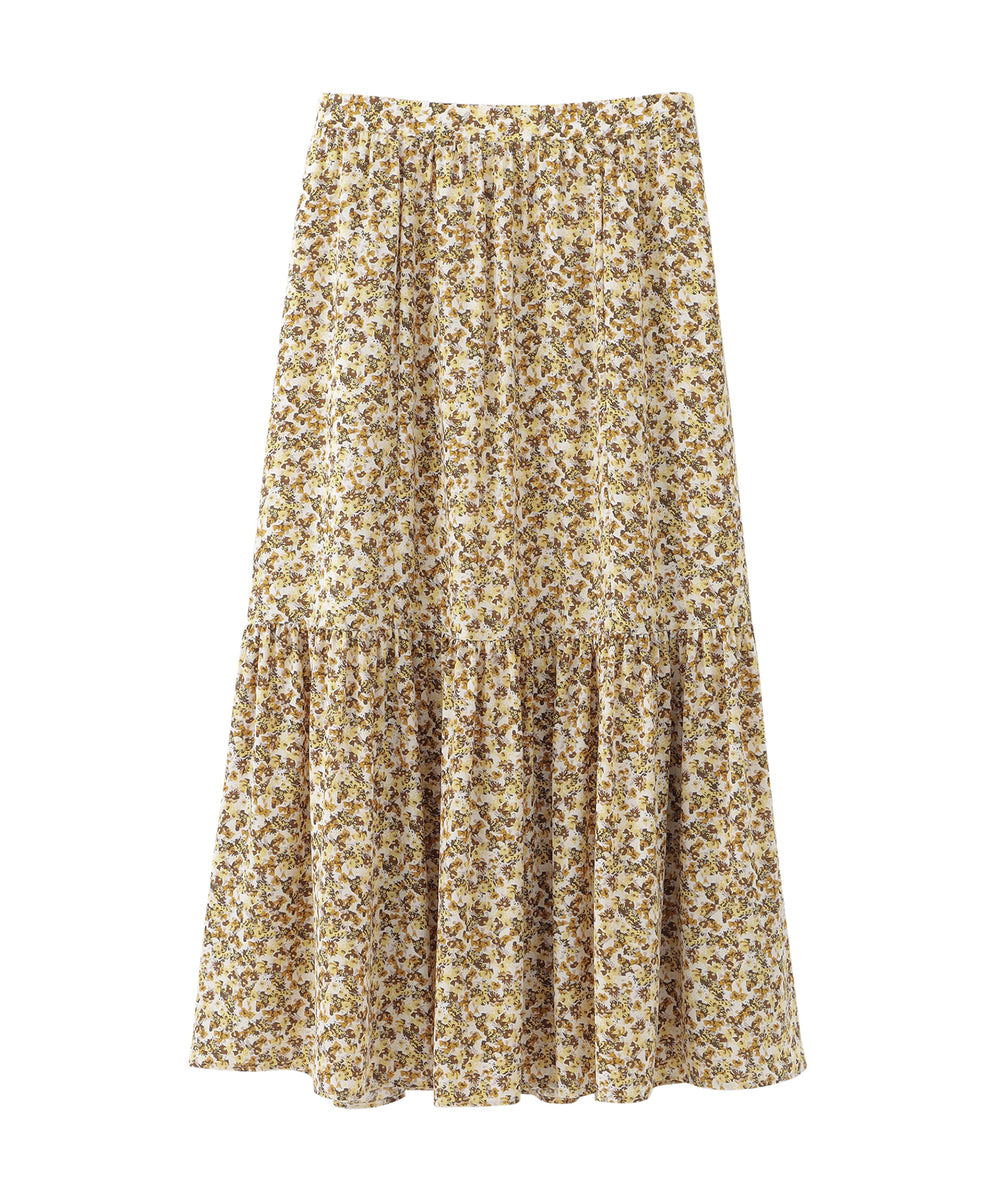 歩くたびに軽やかに揺れる、繊細な小花柄がエレガントな印象のミディ丈スカート。