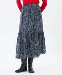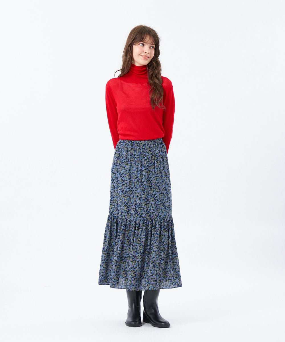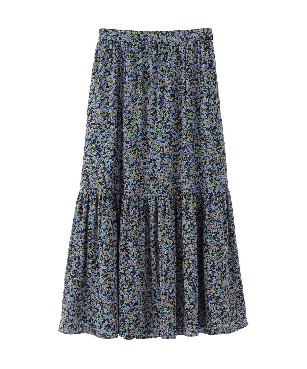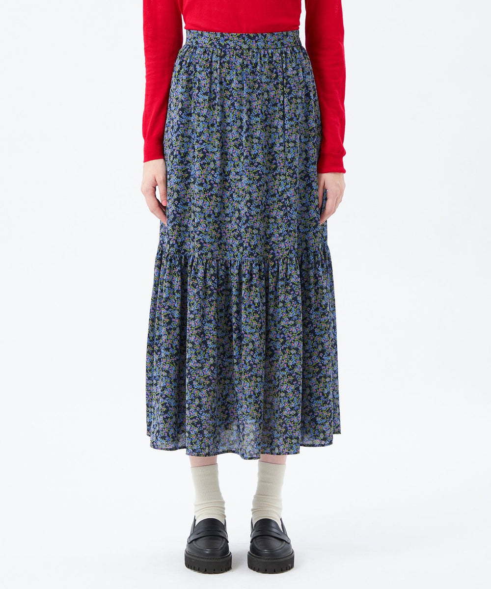 歩くたびに軽やかに揺れる、繊細な小花柄がエレガントな印象のミディ丈スカート。