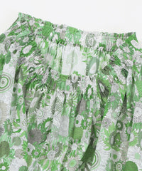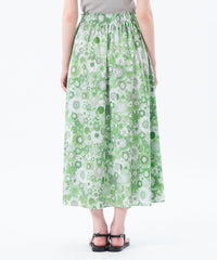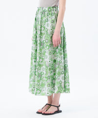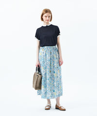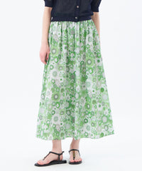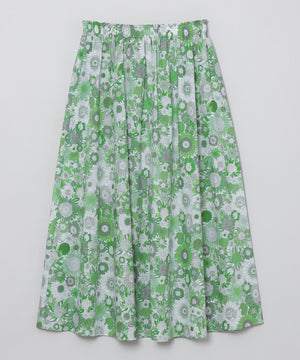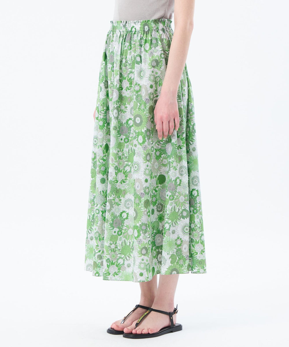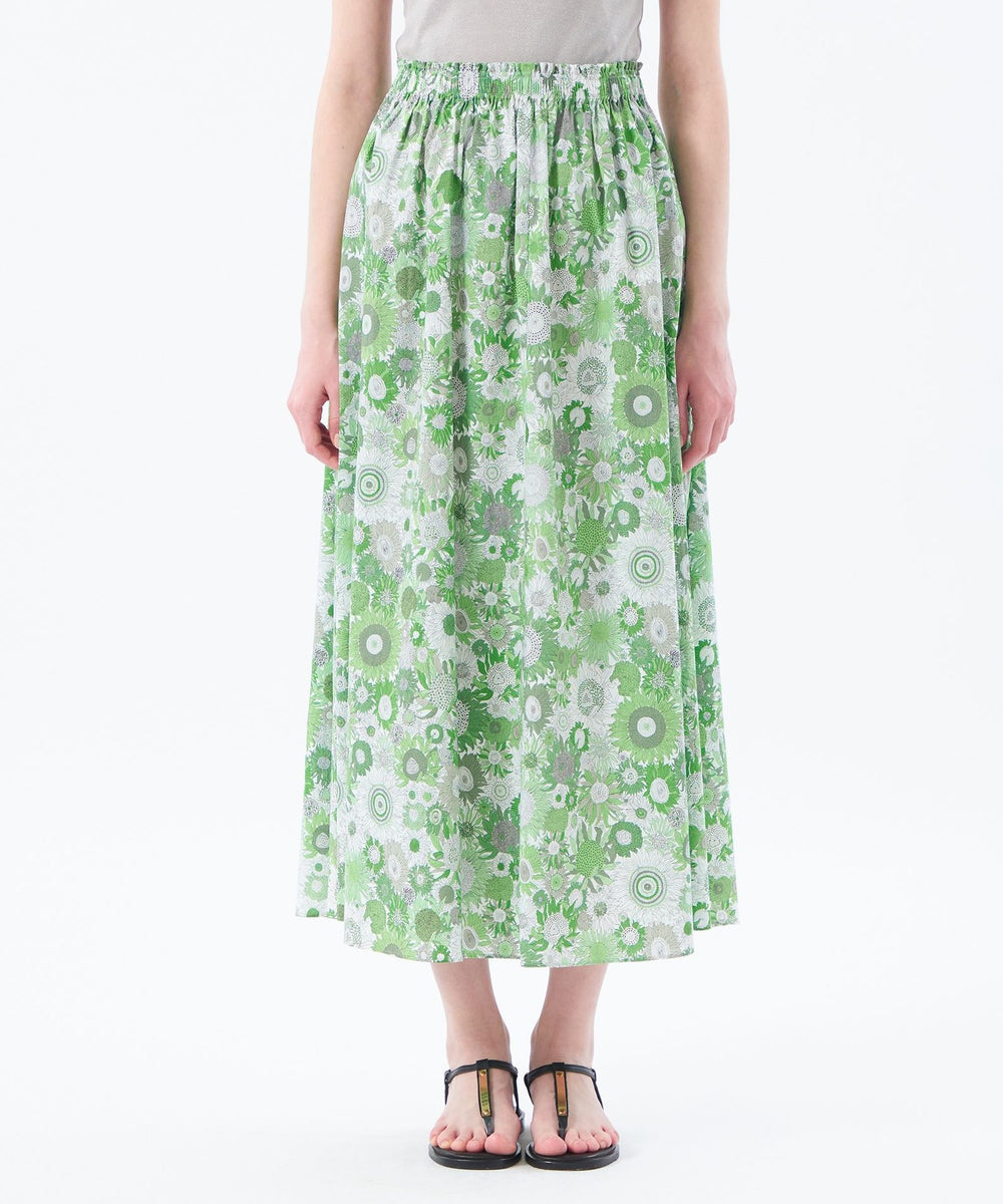 英国リバティ社のフラワー柄を、贅沢な分量感でたっぷりとギャザーをあしらったマキシ丈のスカート。
