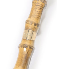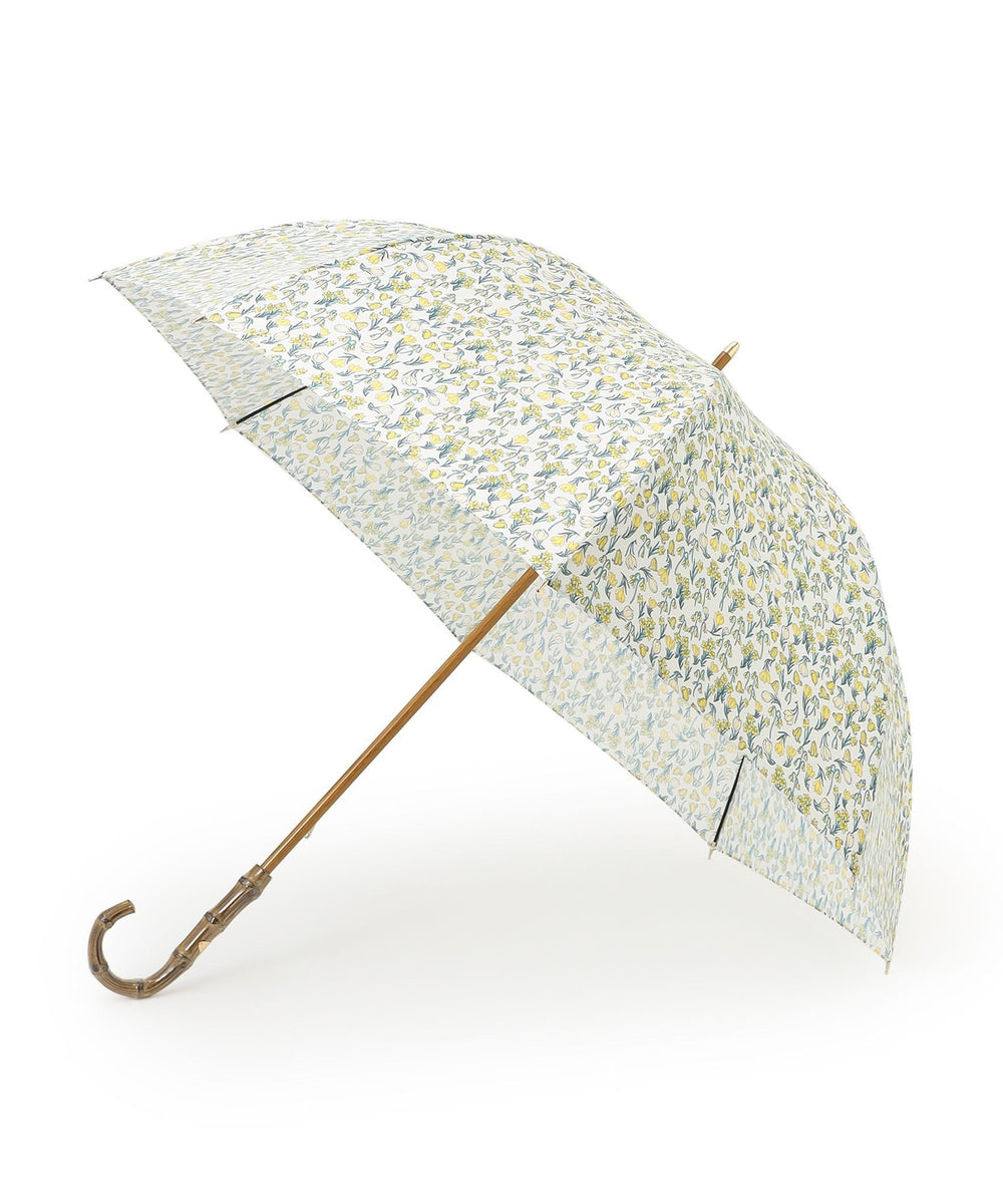 明るいカラーリングが華やかなムードで、雨の日も軽やかに。バンブーハンドルと手元のゴールドプレートがリュクスな印象で、スタイリッシュさもプラス。