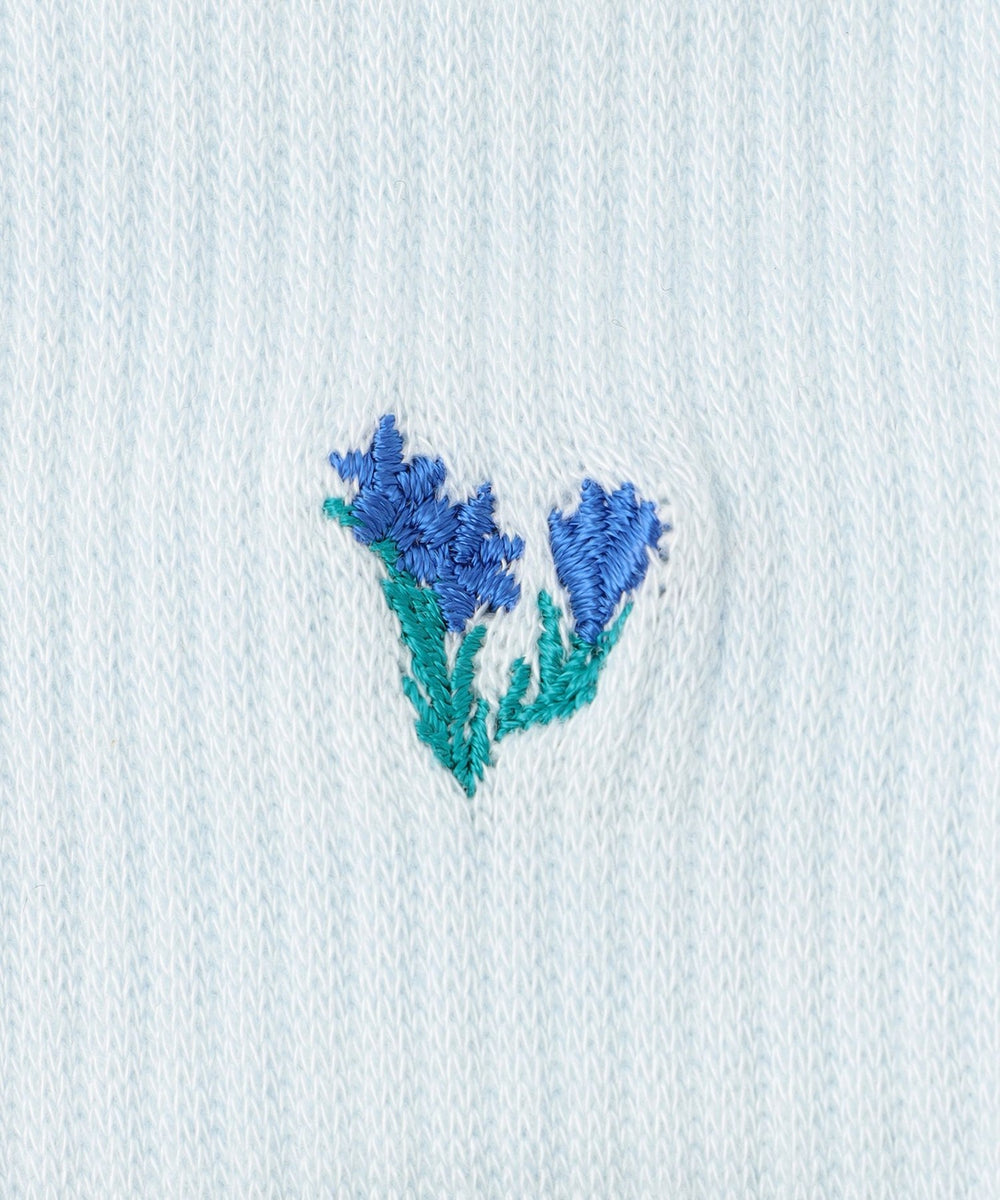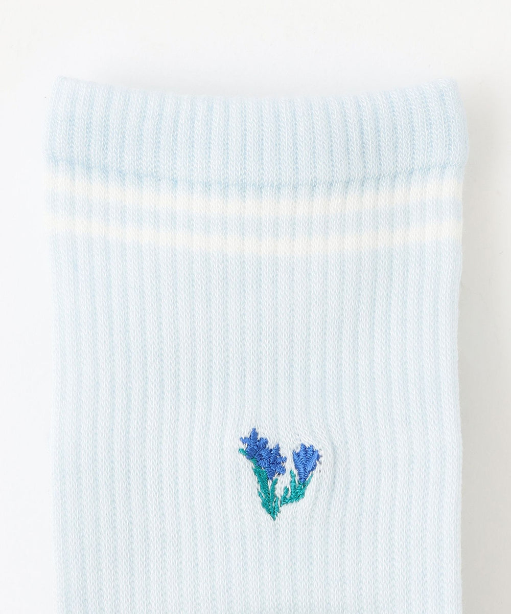 繊細な刺しゅうのフラワーモチーフがポイントのクルーソックス。