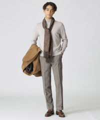 幅広いコートアウターに合わせやすいように色をなじませた柄表現にしています。