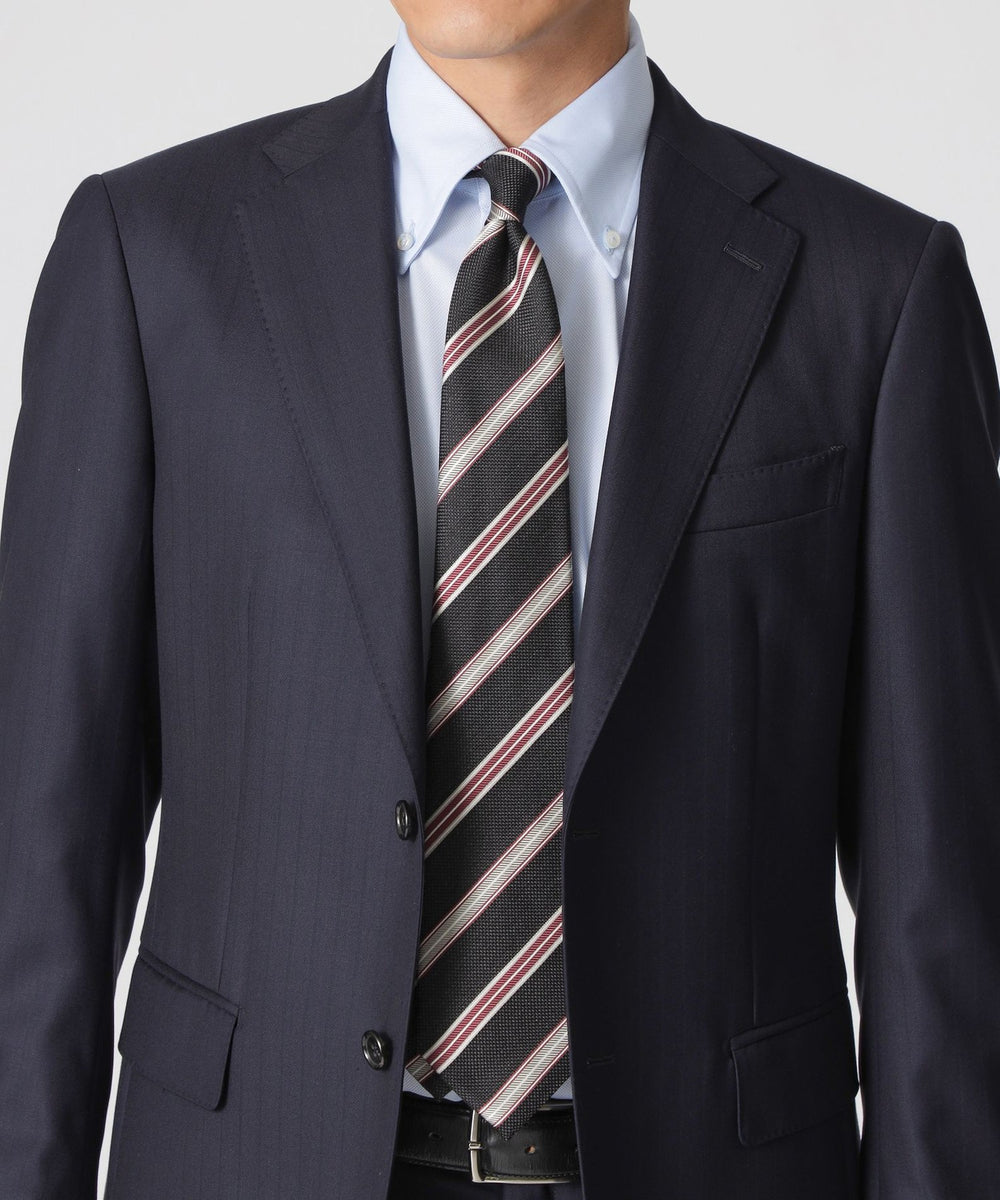 ・程よい厚みのある両面起毛ウール100%芯地を使用する事で、ディンプルの美しさ、締め心地、シワへの回復力に繋がります。