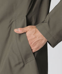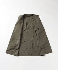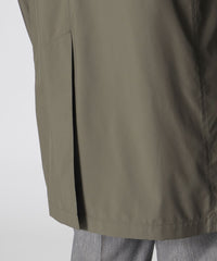 マットで且つ上品な光沢も兼ね備えているマイクロポリエステル使いのタフタです。軽量でなめらかな触り心地が特徴のバルカラーコートになります。非常に軽い素材感。また非フッ素系加工剤を使用することで環境への配慮、人体への配慮もされた一品になります。