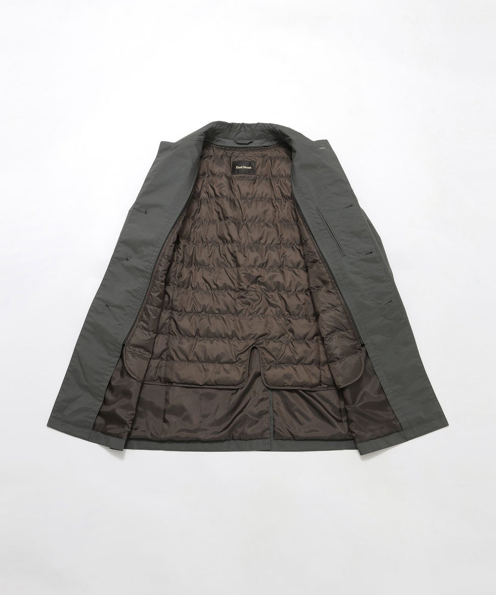 着脱可能な袖付きのダウンライナーを配し、真冬~春先まで着用いただけるコートです。