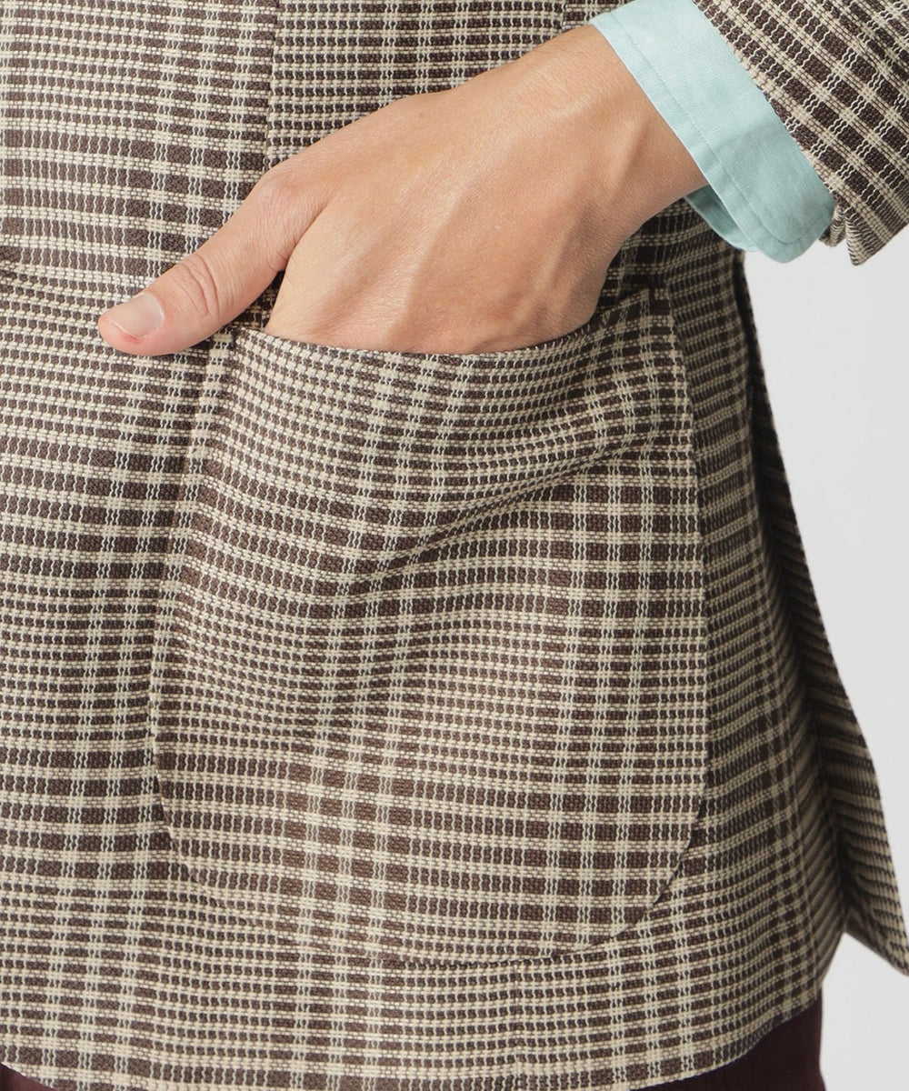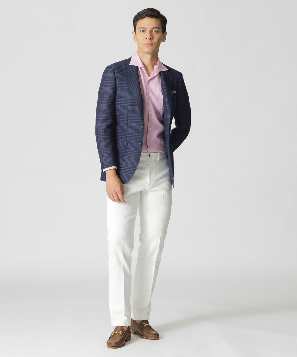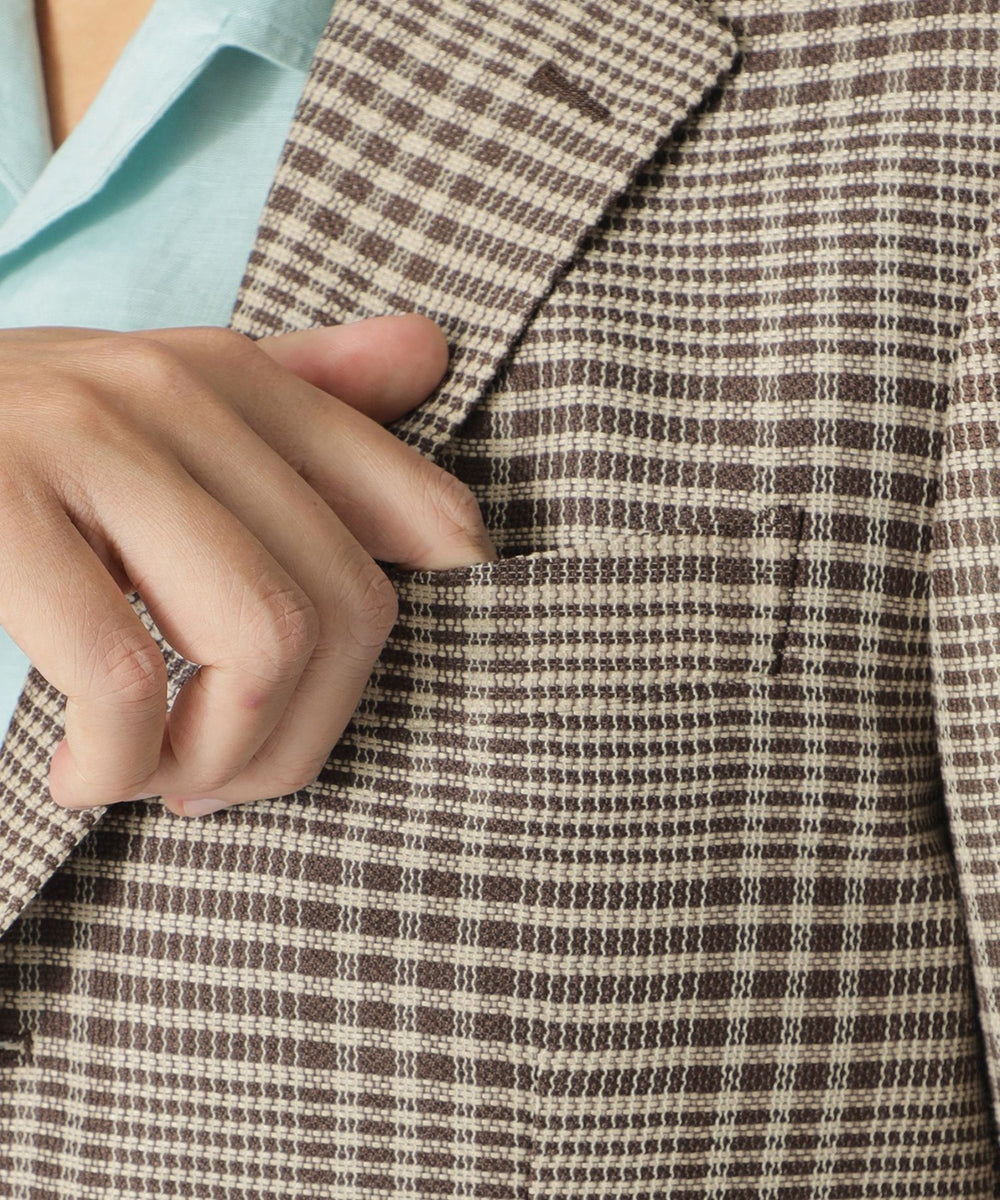 生地に隙間ができる風抜けの良い組織構造なので、涼感のあるジャケットです。
