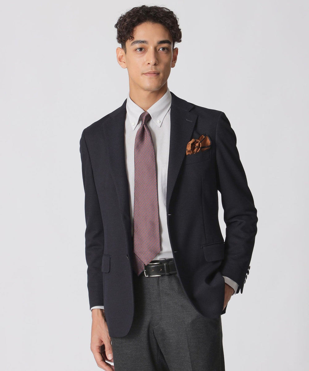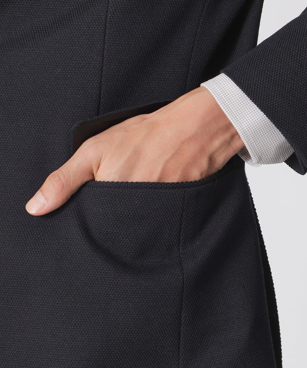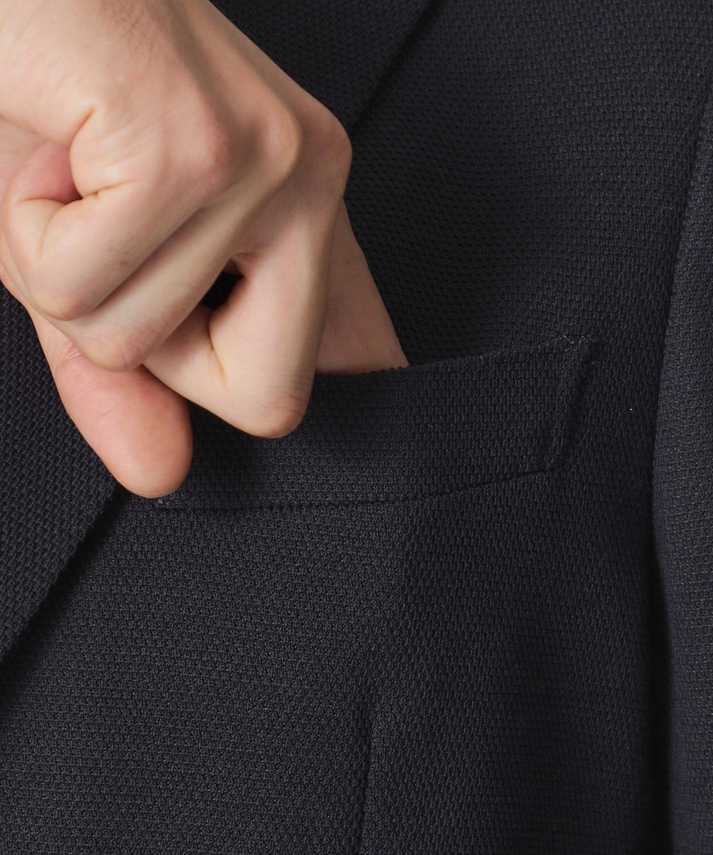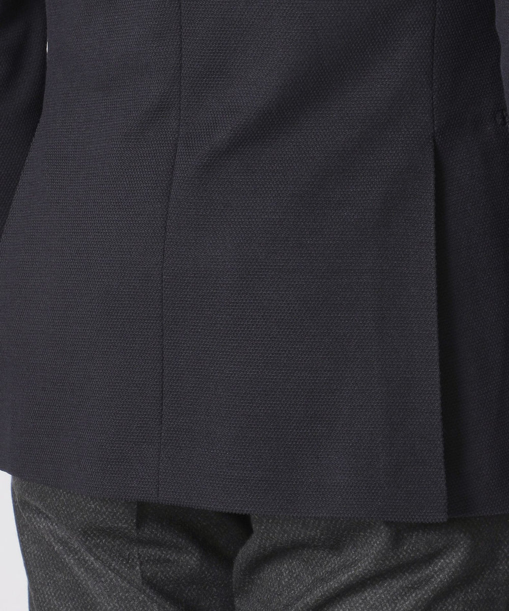 薄さが特徴の生地でアンコン仕立仕様のジャケットですが、肩が立体的になるように縫製しており、雰囲気としっかしとした印象は継続しています。
