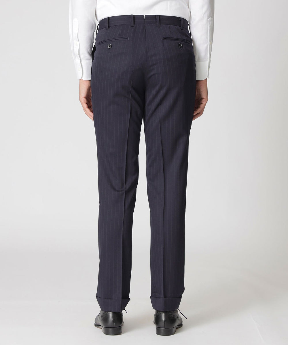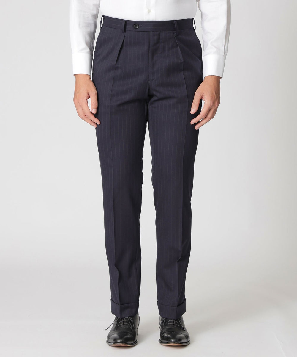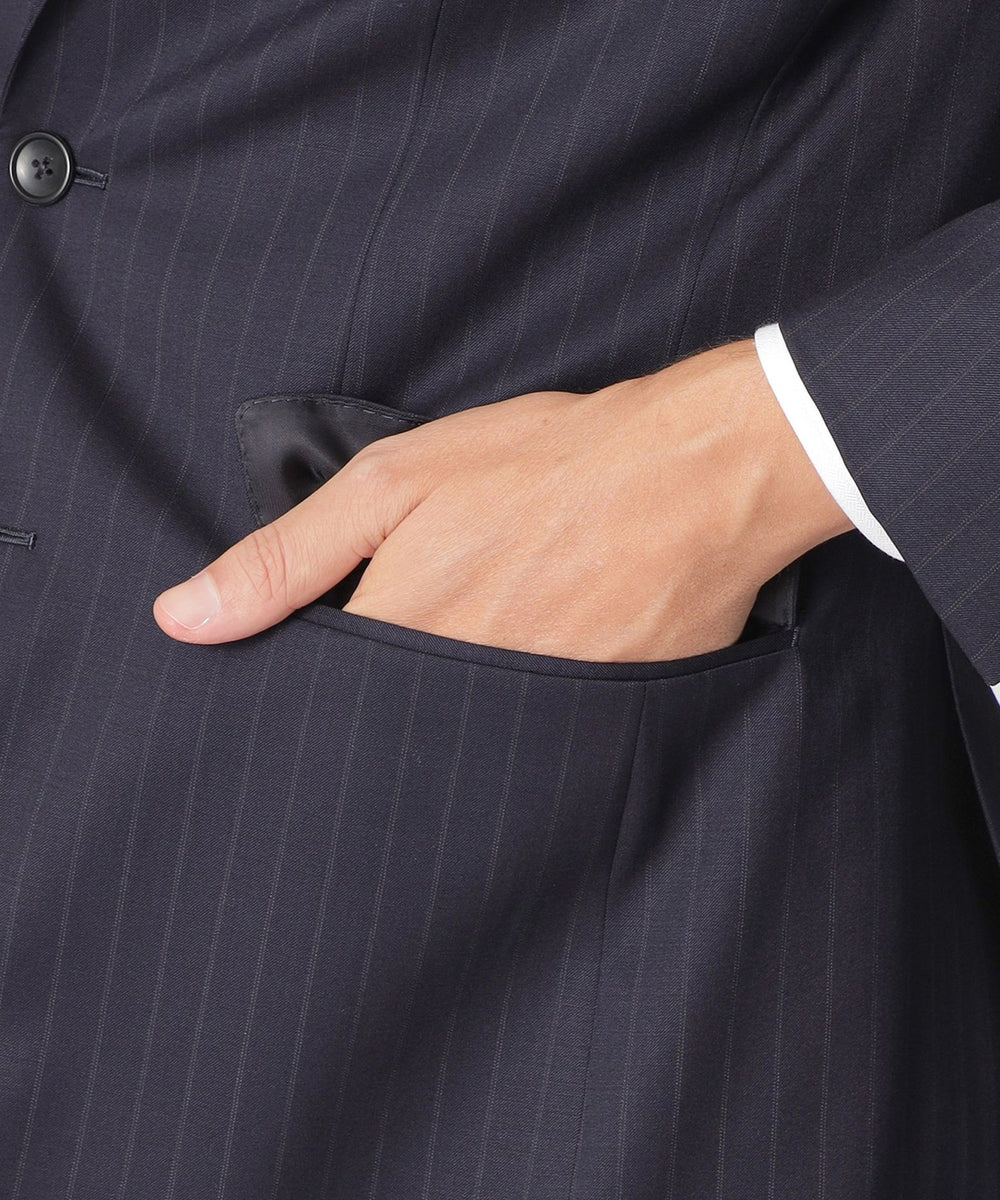 Super 120'sのメリノ種原毛のポール・スチュアートオリジナルの生地を使用したフェードストライプ柄のスーツ。