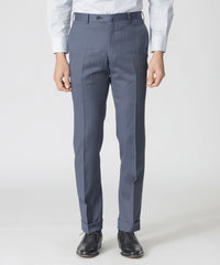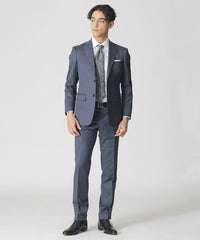 ポール・スチュアートオリジナル素材を使用し、グレイッシュブルーカラーが印象的なスーツ。