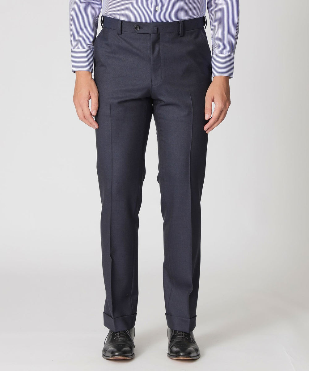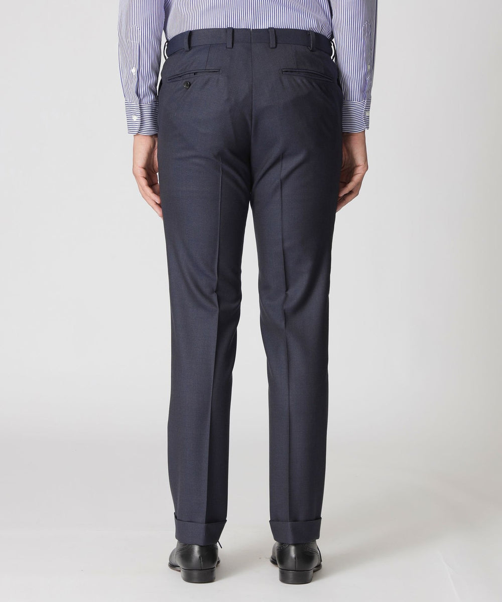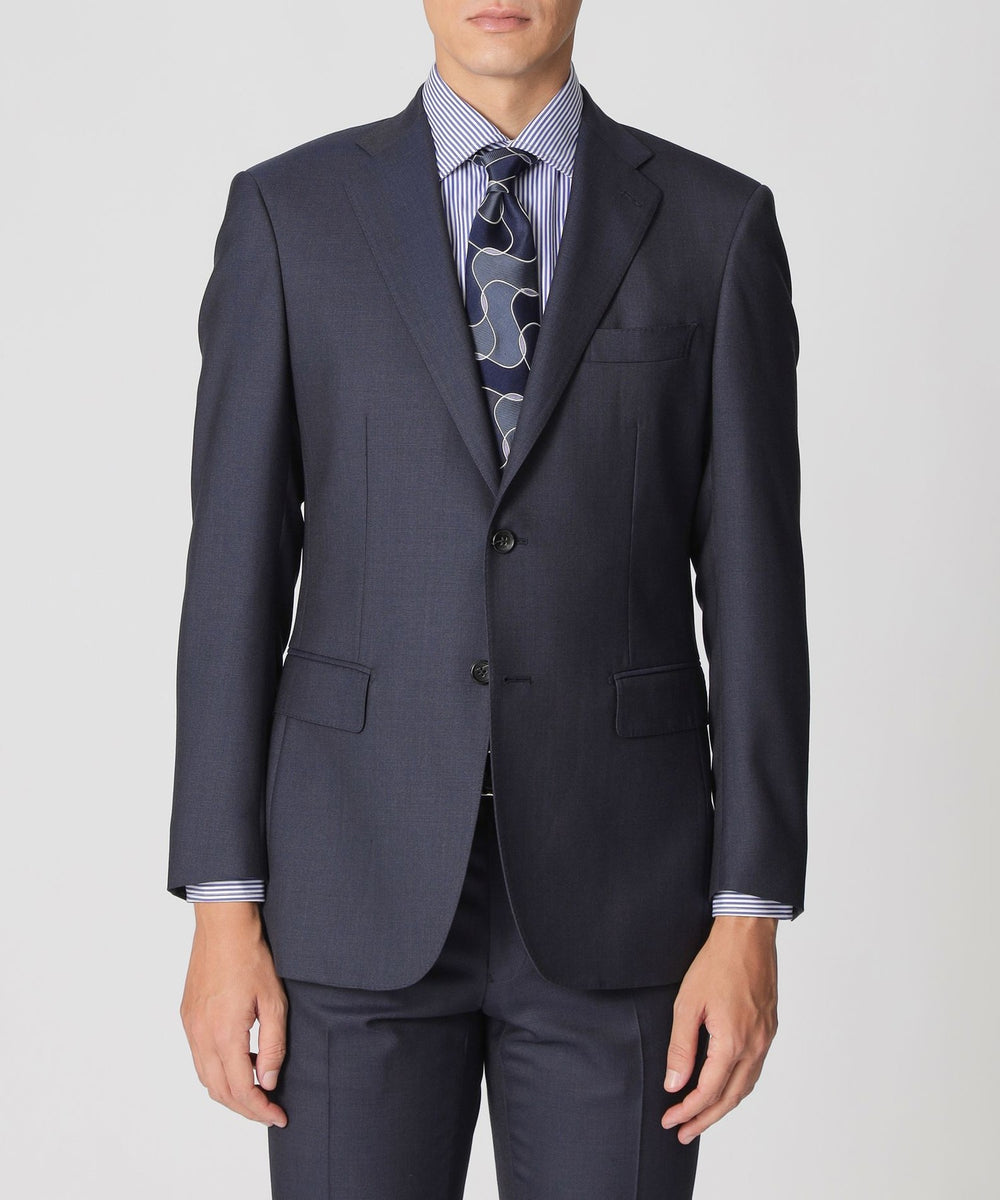 ポール・スチュアートらしい品のある光沢感が特徴的な、オリジナルのピンヘッド柄生地を使用したスーツです。