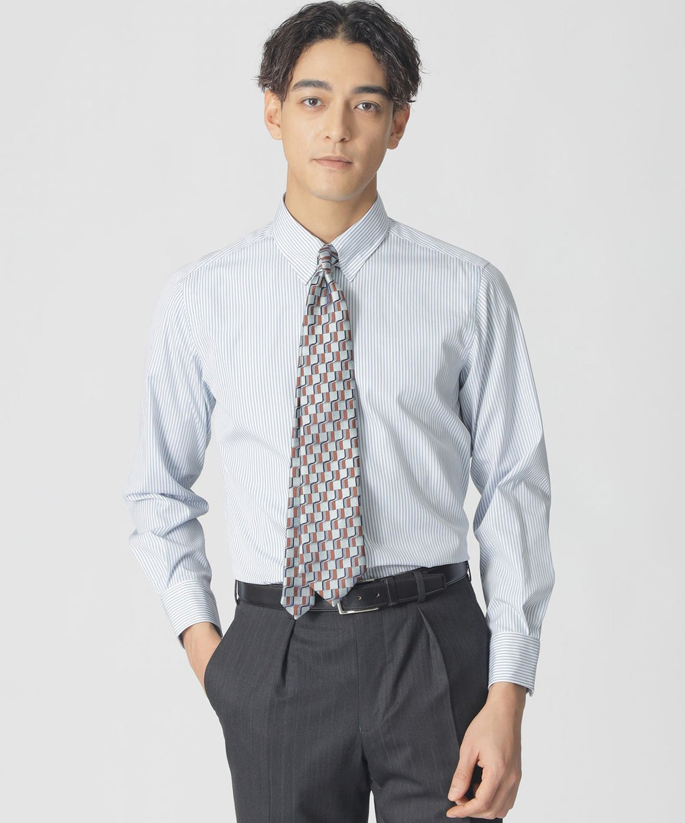 ミニロンドンストライプ柄 タブカラードレスシャツ
