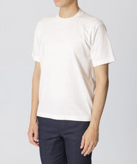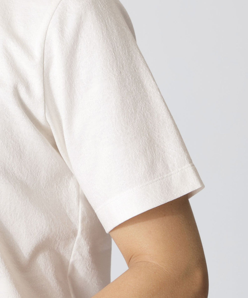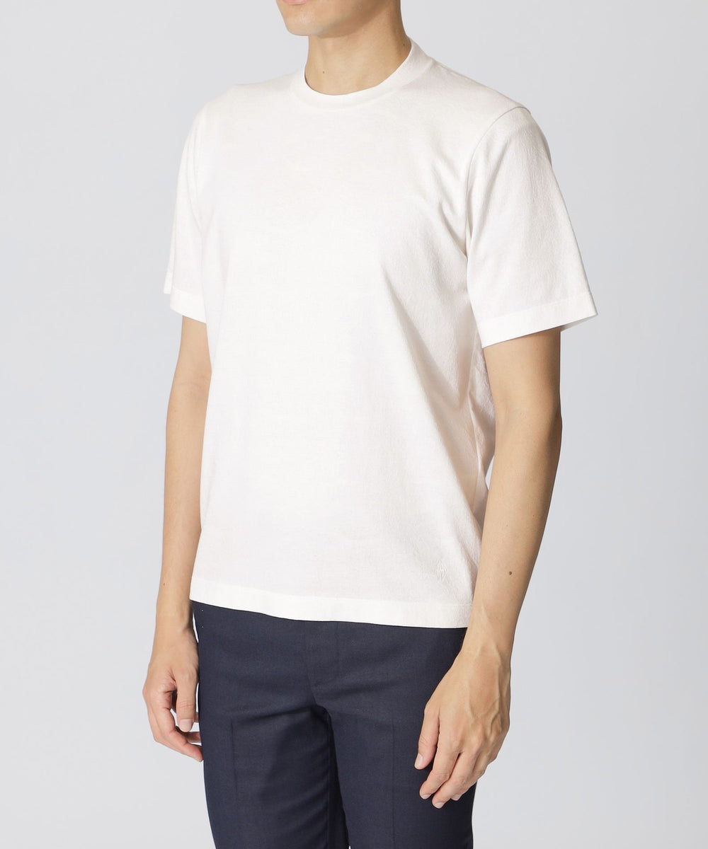 ジャケットの皮脂汚れを防ぎ、首回りのフィット感も上がり上品なTシャツに仕上がっています。