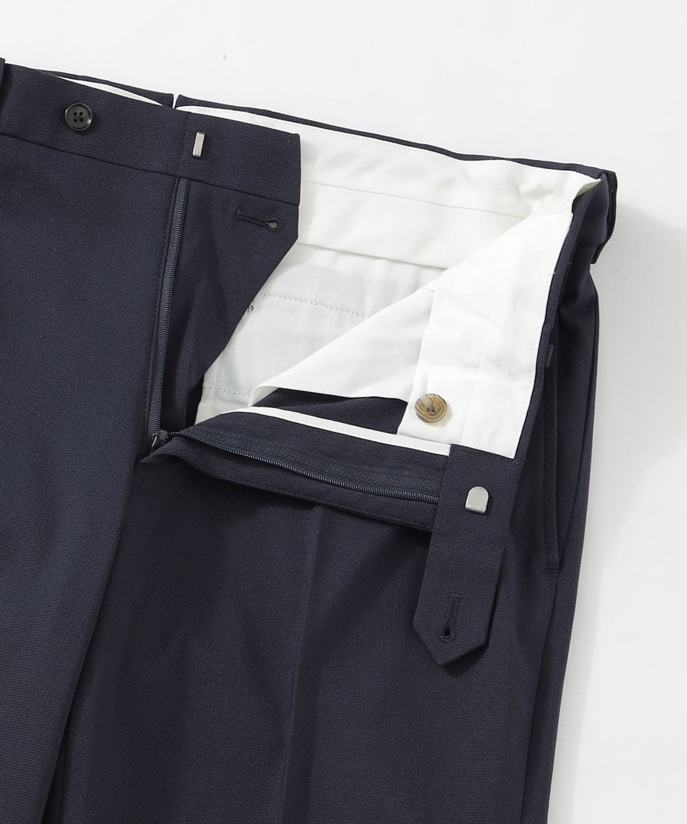 また、ウエスト部分に配置されたゴムによって、最大4cm程ウエストが伸びる「Adjustable Fit」仕様になっており、座っている時やお食事後等にもウエストの着用感が快適になるスラックスです。